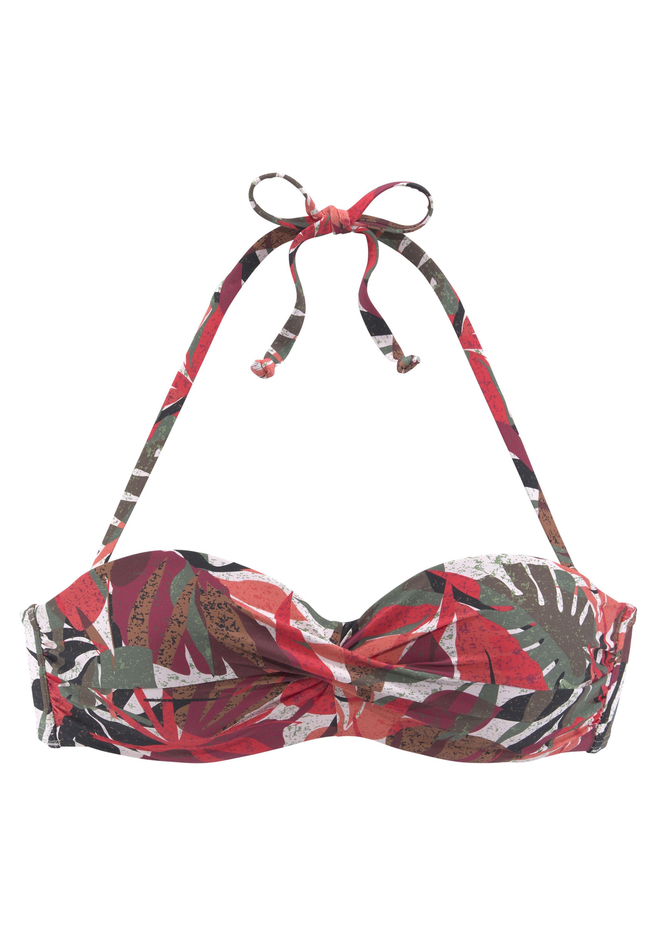Bügel-Bandeau-Bikinitop von Lascana mit tropischem Alloverprint. Wattierte Cups für guten Sitz, abnehmbare Träger für regelmäßige Sonnenbräune. Elastisches Material mit recyceltem Polyamid.