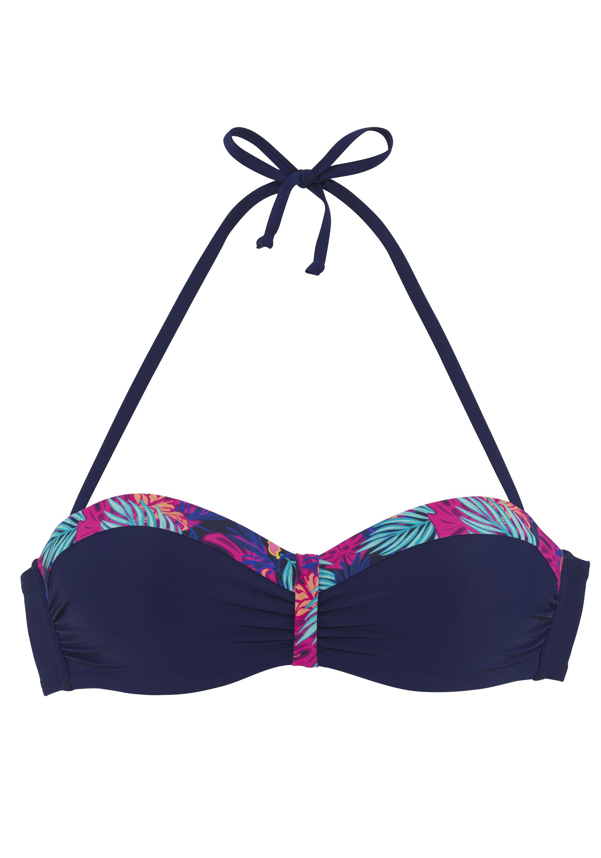 Modisches Bügel-Bandeau-Bikini-Top von Lascana. Unifarben mit Printeinsätzen. Abnehmbare Träger und wattierte Cups. Mix-Kini: nach Lust und Laune mixen. Trageangenehme Qualität mit recyceltem Polyamid.