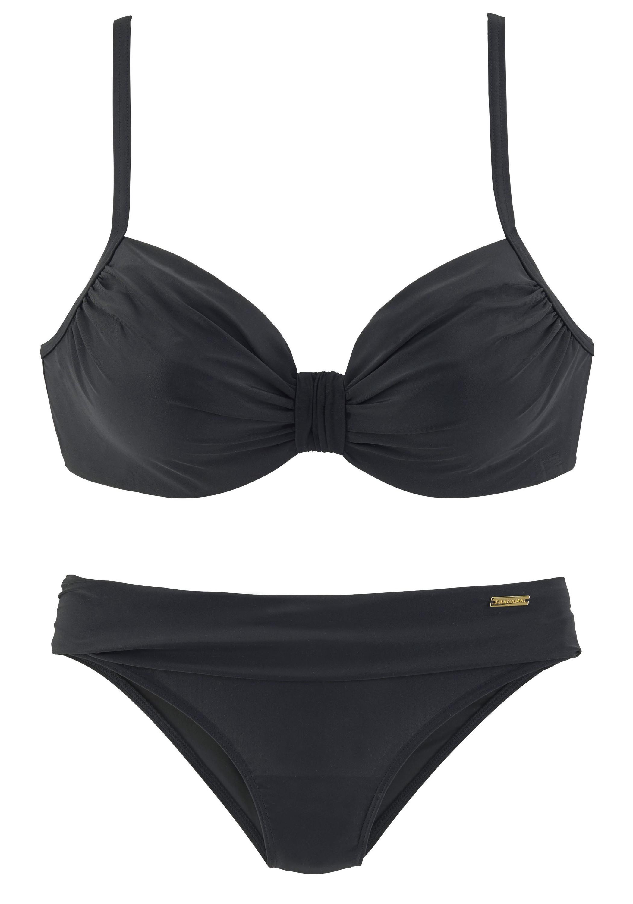 Bügel-Bikini von LASCANA. Bademoden in modisch-eleganter Form mit aufwendigen Raffungen. Jeweils in 3 aktuellen Farben. Mit verstellbaren Trägern. Top im Cupbereich gefüttert. Hose in Fuchsia und Blau vorn gefüttert.