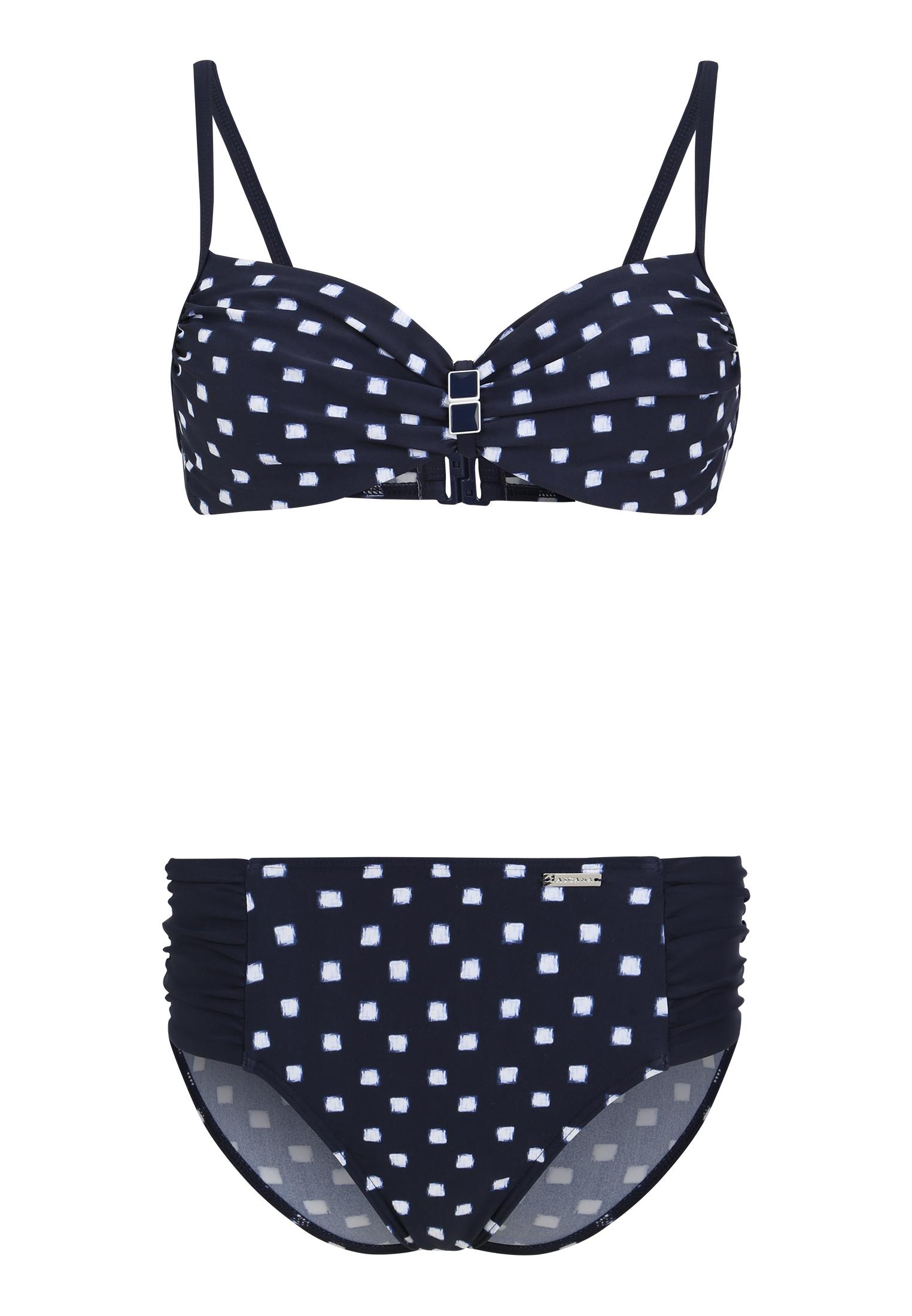 Mit modischem Punkteprint. Mit verstellbaren Trägern. Zieraccessoires vorn zwischen den Cups. Etwas kompakter geschnittene Hose seitlich leicht gerafft.