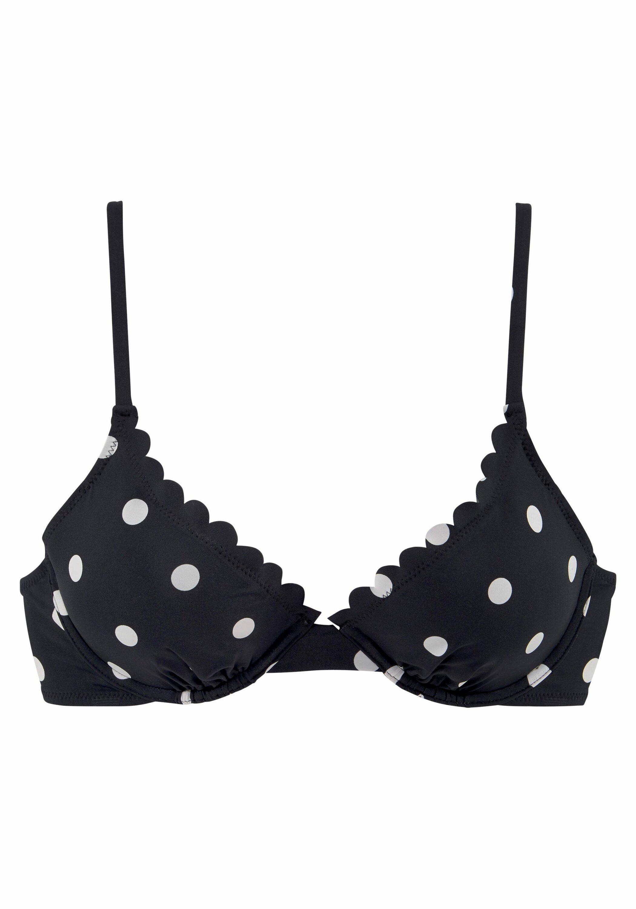 Modisches Bügel-Bikinitop von Lascana mit Punktemuster und Muschelkante. Verstellbare Spaghettiträger und wattierte Cups. Breite Seitenstege mit Verschluss. Aus der Mix-Kini-Serie. Weiche Microfaser.