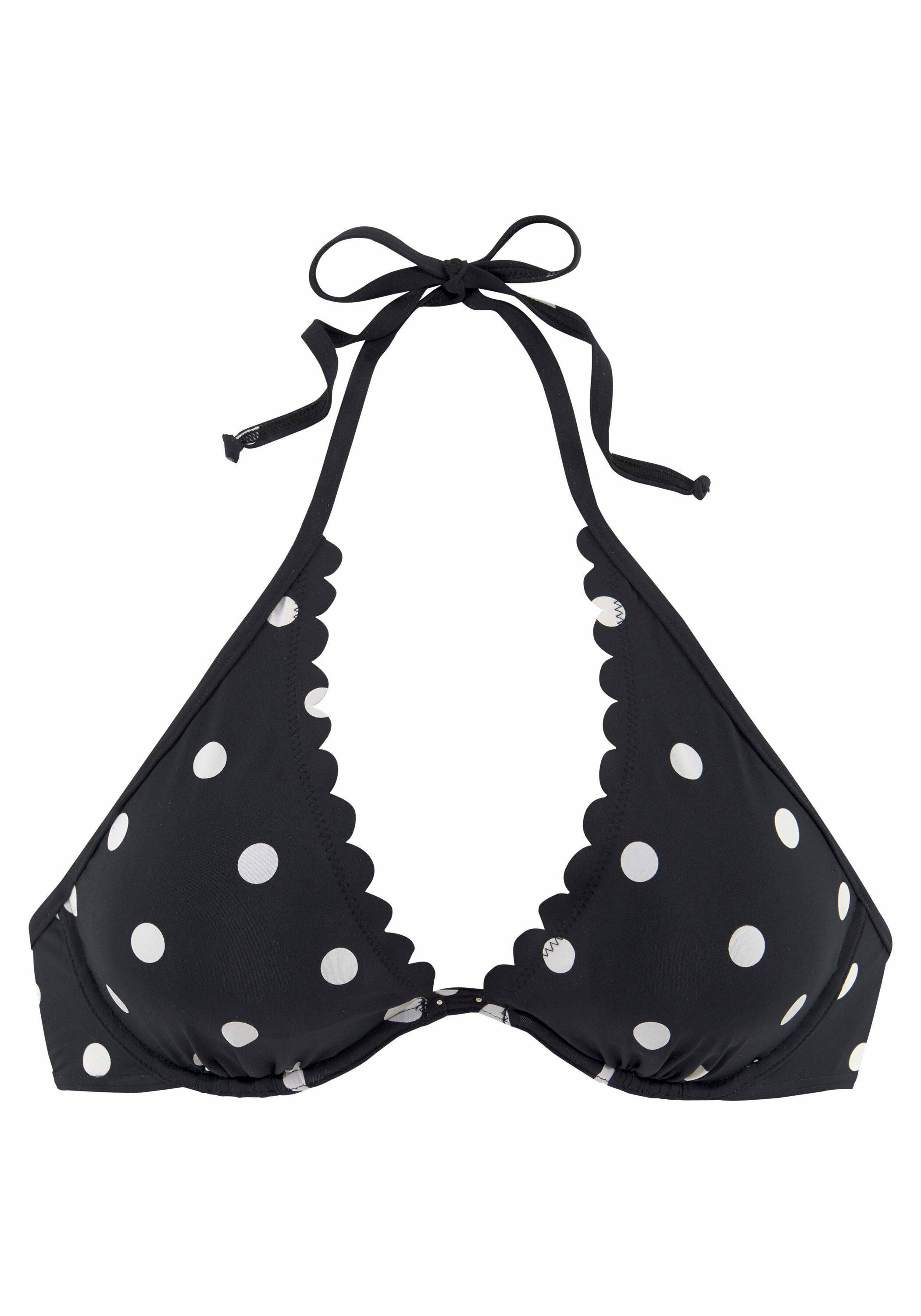 Hübsches Bügel-Bikinitop von Lascana mit Punktemuster und Muschelkante. Neckholder zum Binden. Breite Seitenstege mit Verschluss. Aus der Mix-Kini-Serie. Weiche Microfaser.