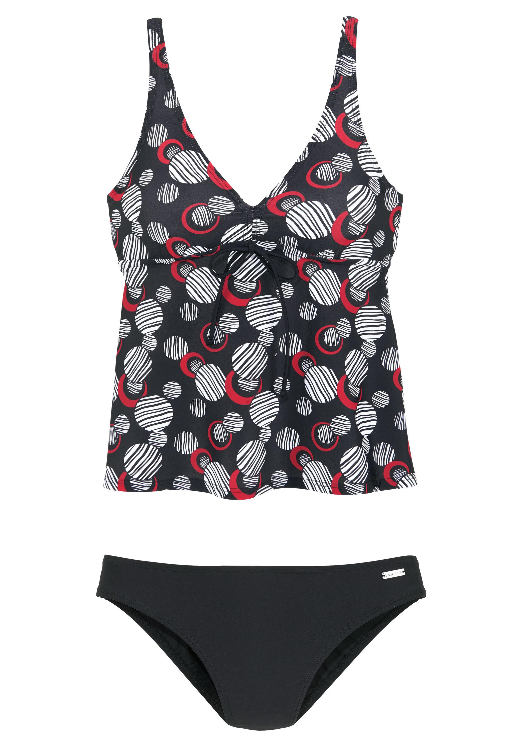 Im modernen Design mit Kreisen. Figurfreundliches Top in A-Form: liegt nicht eng an und verdeckt den Bauch. Verstellbare Träger. Unter der Brust regulierbar. Brustbereich und Hose vorn gefüttert.
