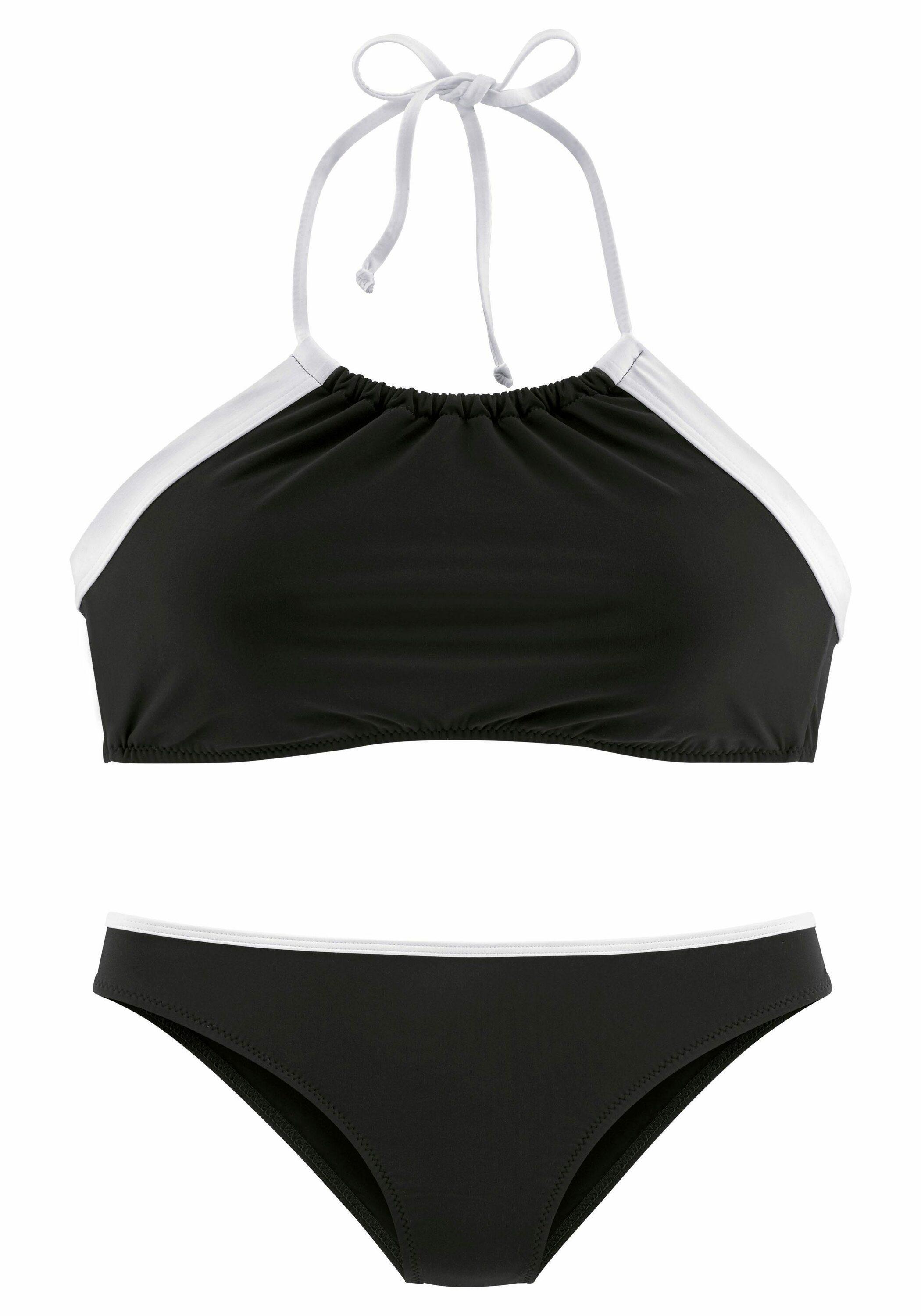 Bustier-Bikini von Lascana im schwarz-weiß Look. Herausnehmbare Cups und im Nacken zu binden. Obermaterial: 80% Polyamid, 20% Elasthan. Futter: 100% Polyamid
