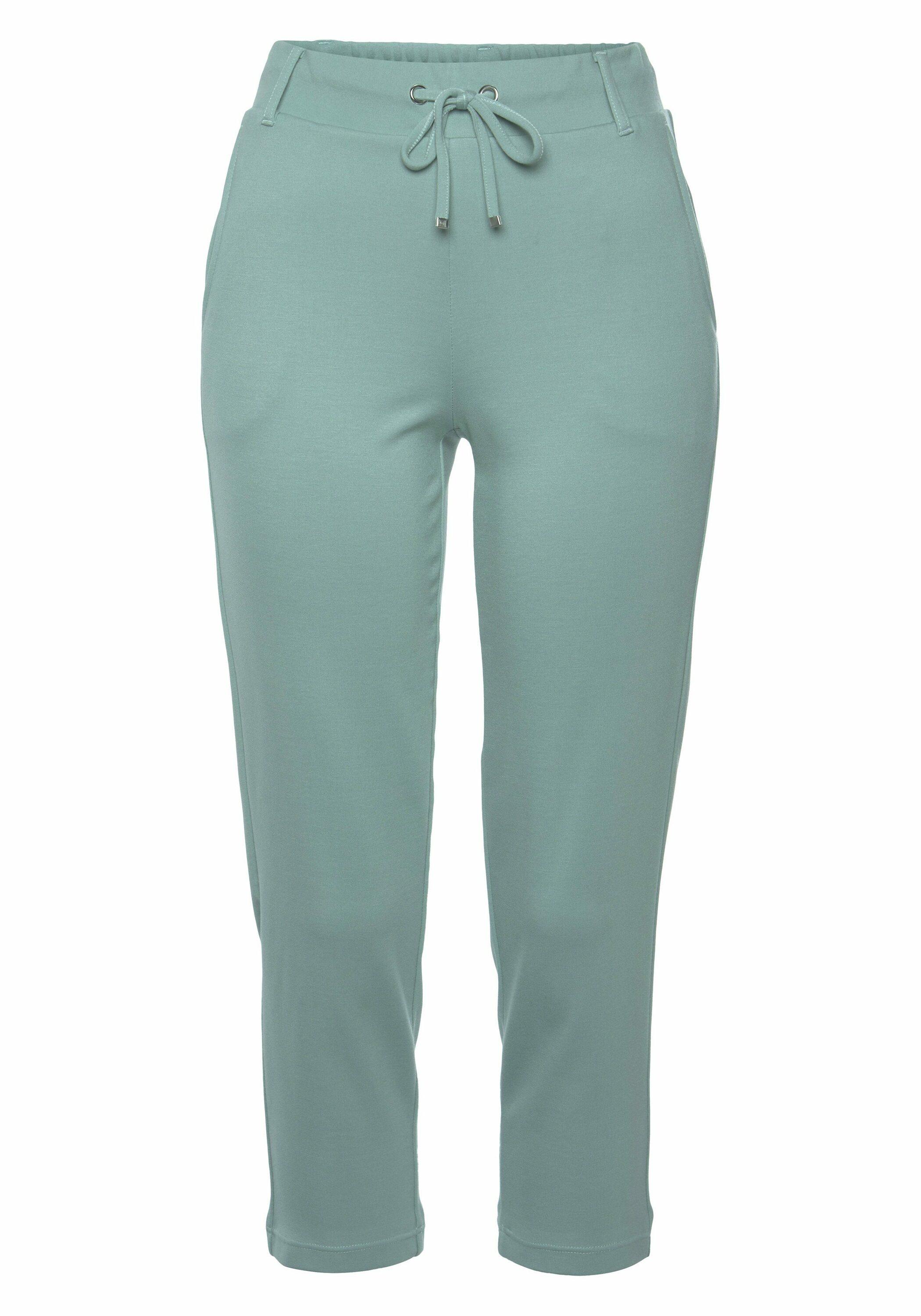 Capri von Lascana. Bündchen mit Gürtelschlaufen und Bindeband. Seitliche Eingrifftaschen. Aus 70% Viskose, 25% Polyamid, 5% Elasthan.