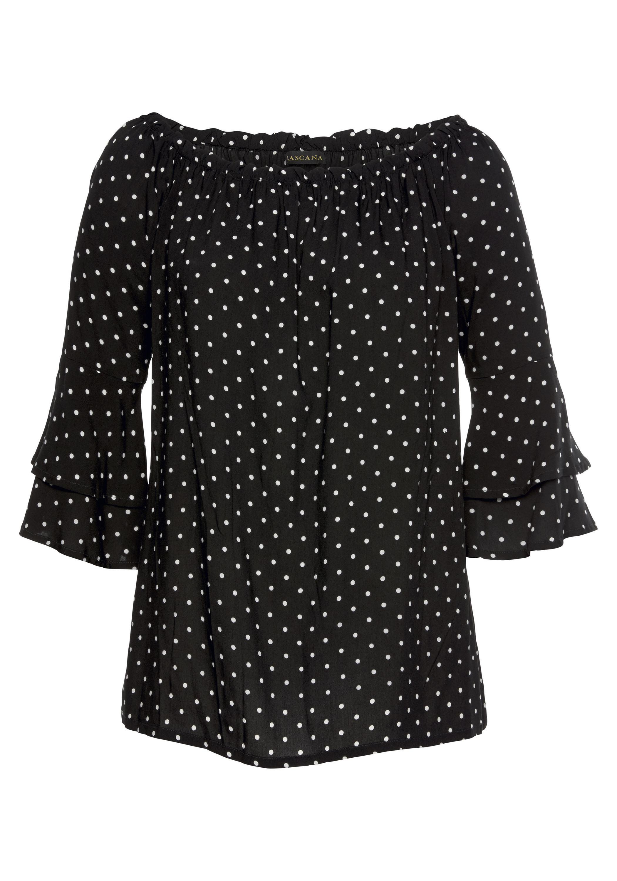 LascanaCarmenbluse - Langarmbluse Damen - schwarz-weiß-gepunktet