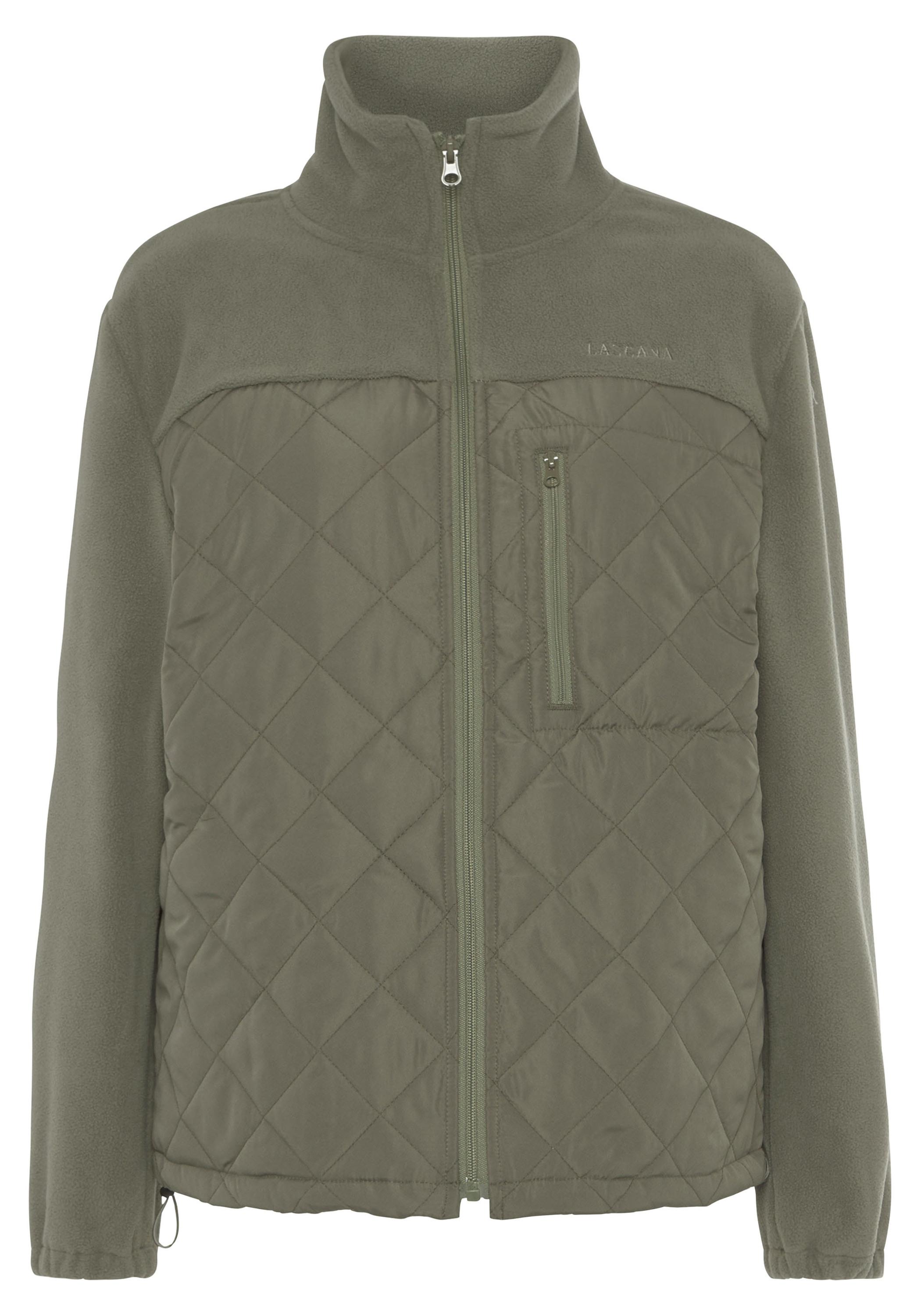 - Jacke in der oberen Hälfte aus weichem Fleece und in der unteren aus gestepptem Stoff