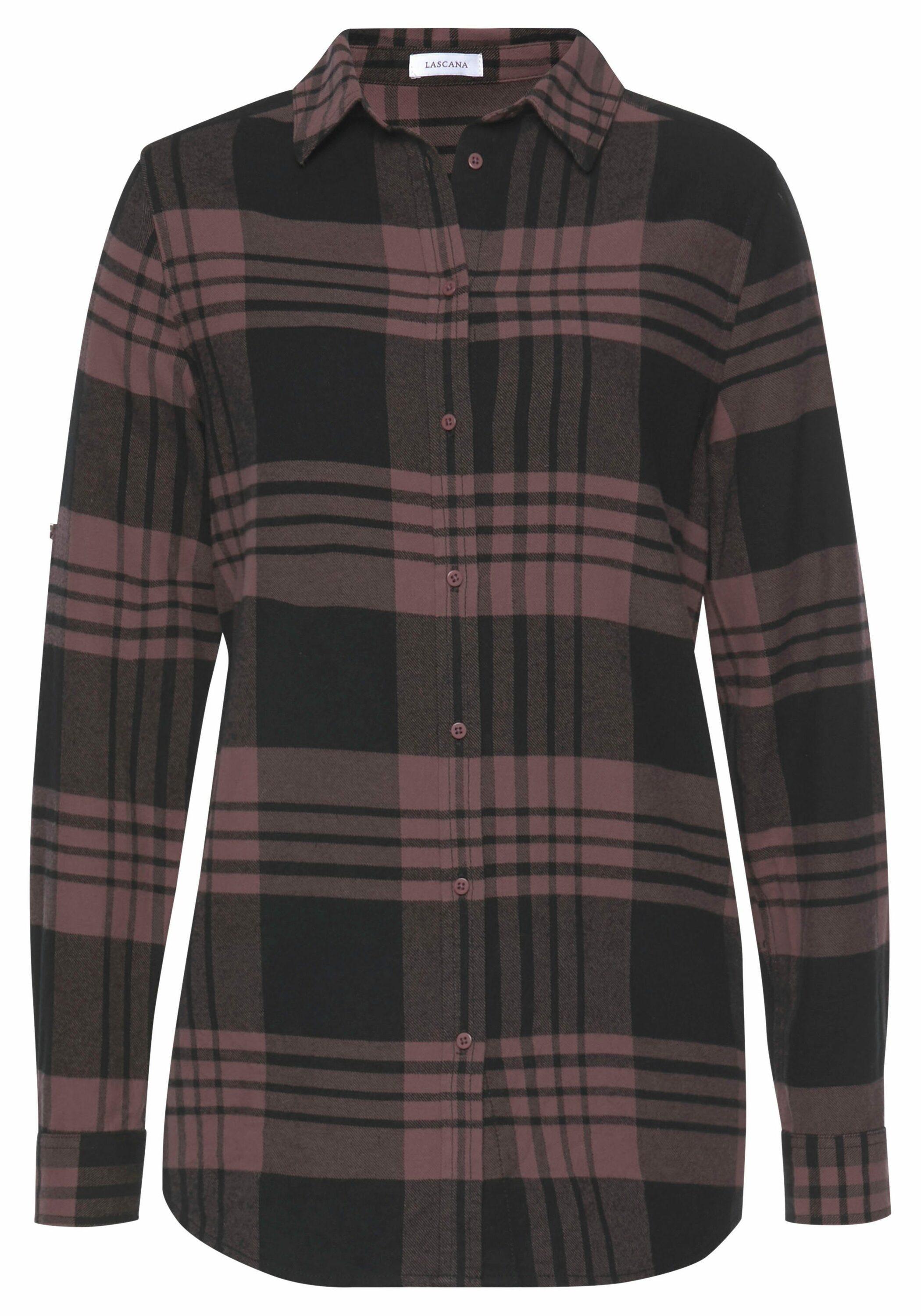 Karobluse von Lascana aus weichem Flanell. Knopfleiste und lange Ärmel. Mit Riegel am Ärmel zum Krempeln. Länge ca. 75 cm. Aus 100% Baumwolle (unterstützt Cotton made in Africa).