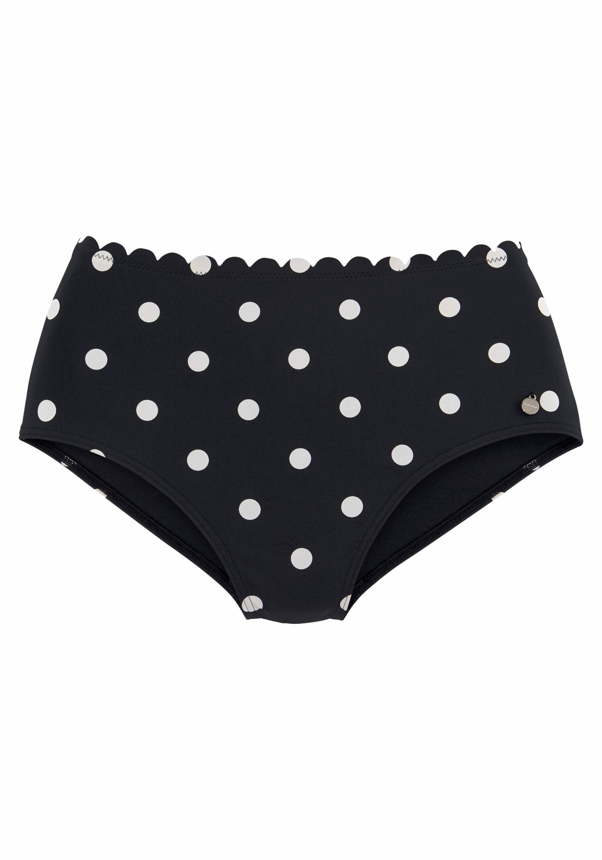 Modische Bikinihose von Lascana mit Punktemuster und Muschelkante. High-waist-Passform mit extrabreiten Seitenstegen. Aus der Mix-Kini-Serie. Weiche Microfaser.