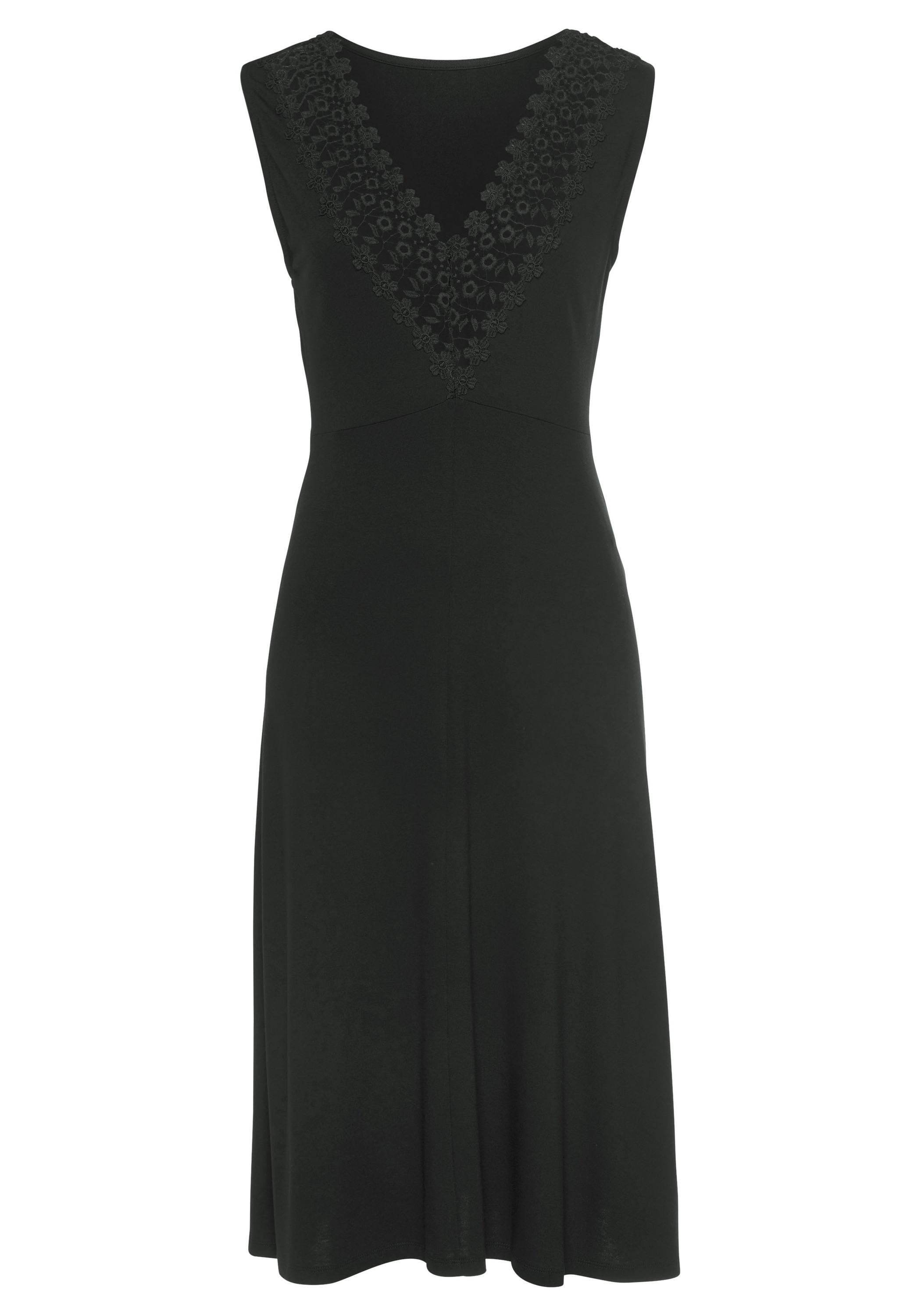 Ärmelloses Kleid von Lascana mit Rundhalsausschnitt. Taillennaht und floraler Spitzeneinsatz im Rücken. Taillierte Passform. Aus angenehmem Viskosejersey.