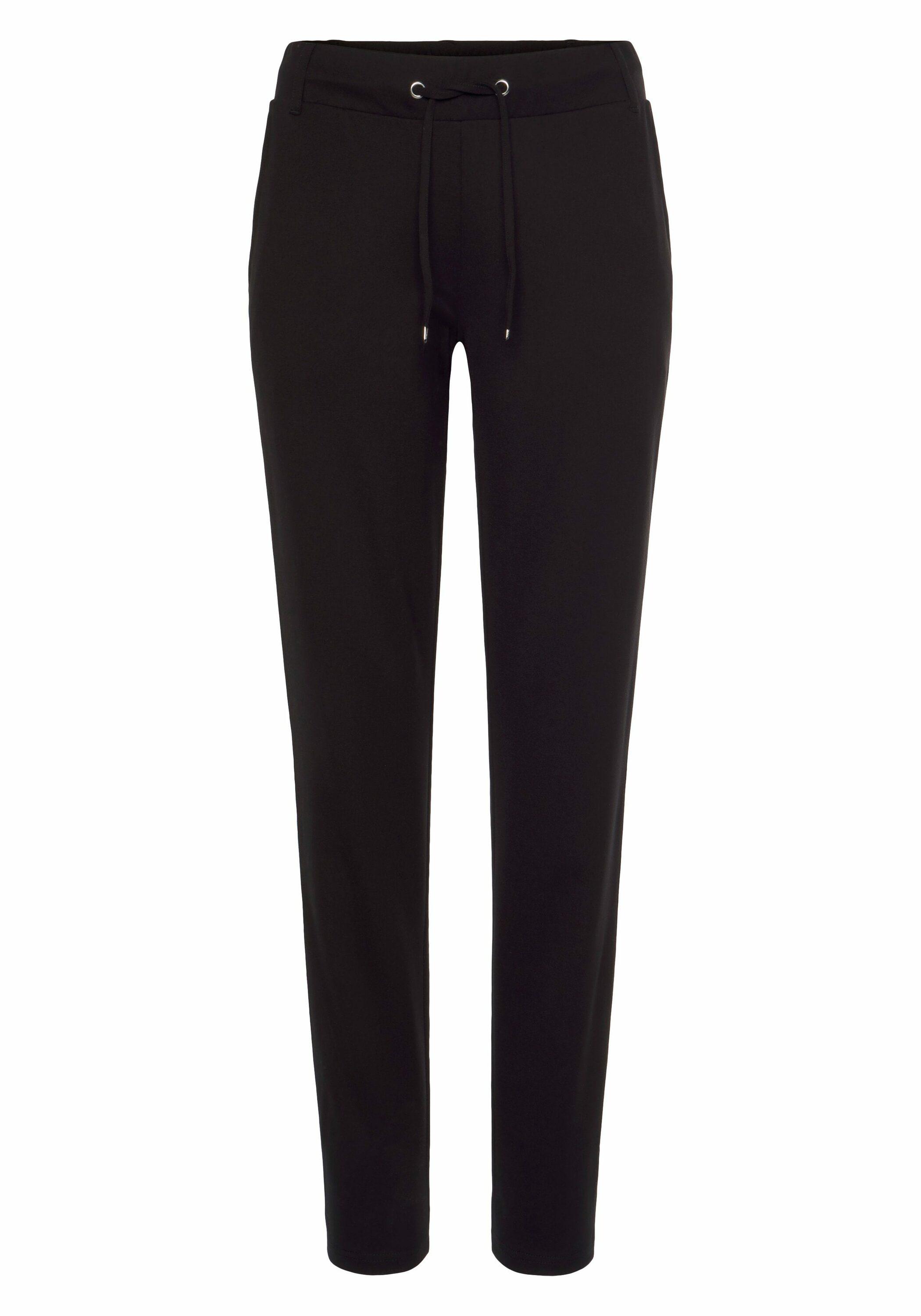 Joggpants von Lascana. Seitlicher Seitenstreifen entlang der Beine. Bündchen mit Bindeband und Gürtelschlaufen. Aus 70% Viskose, 25% Polyamid, 5% Elasthan.