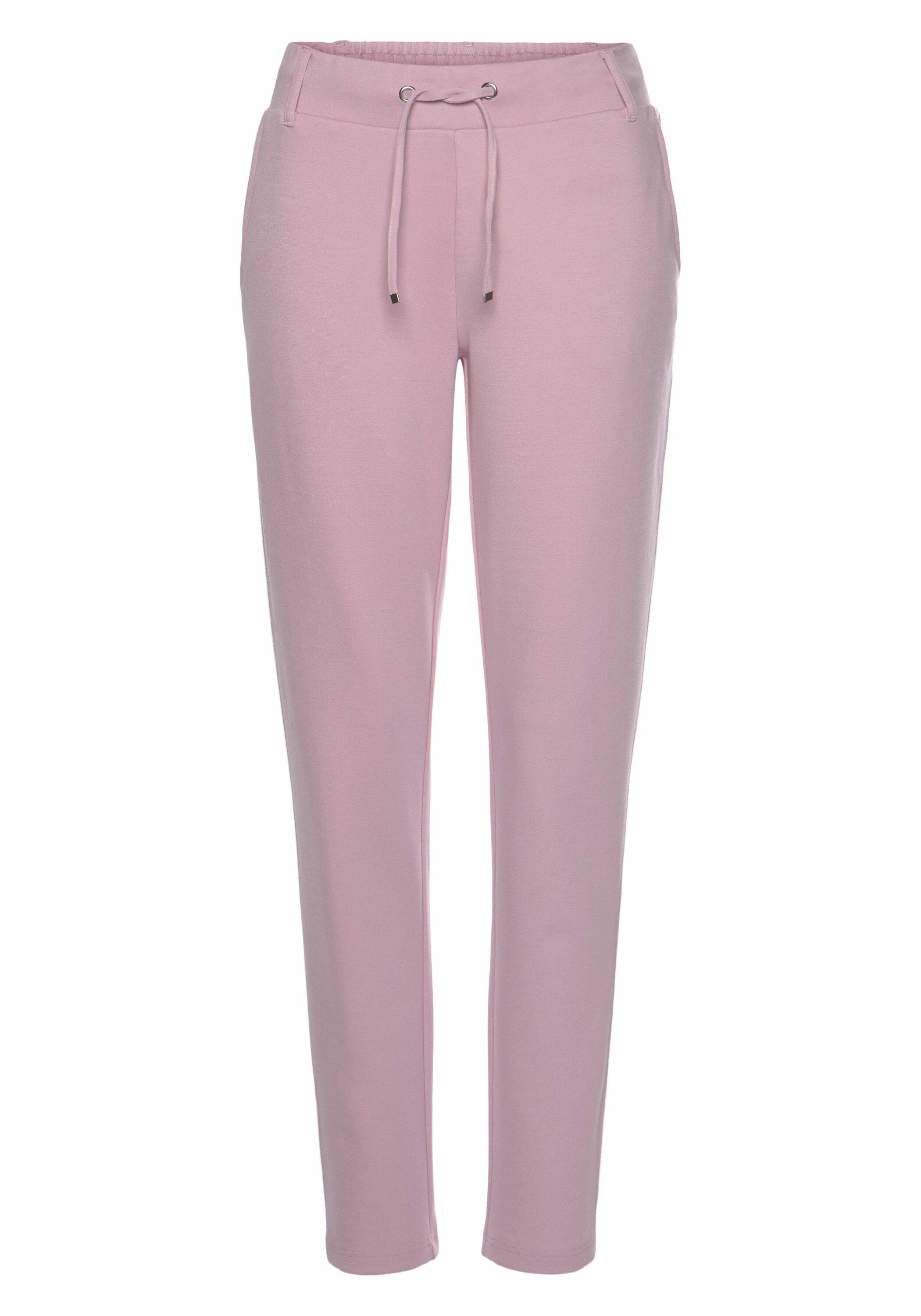 Joggpants von Lascana. Seitlicher Seitenstreifen entlang der Beine. Bündchen mit Bindeband und Gürtelschlaufen. Aus 70% Viskose, 25% Polyamid, 5% Elasthan.