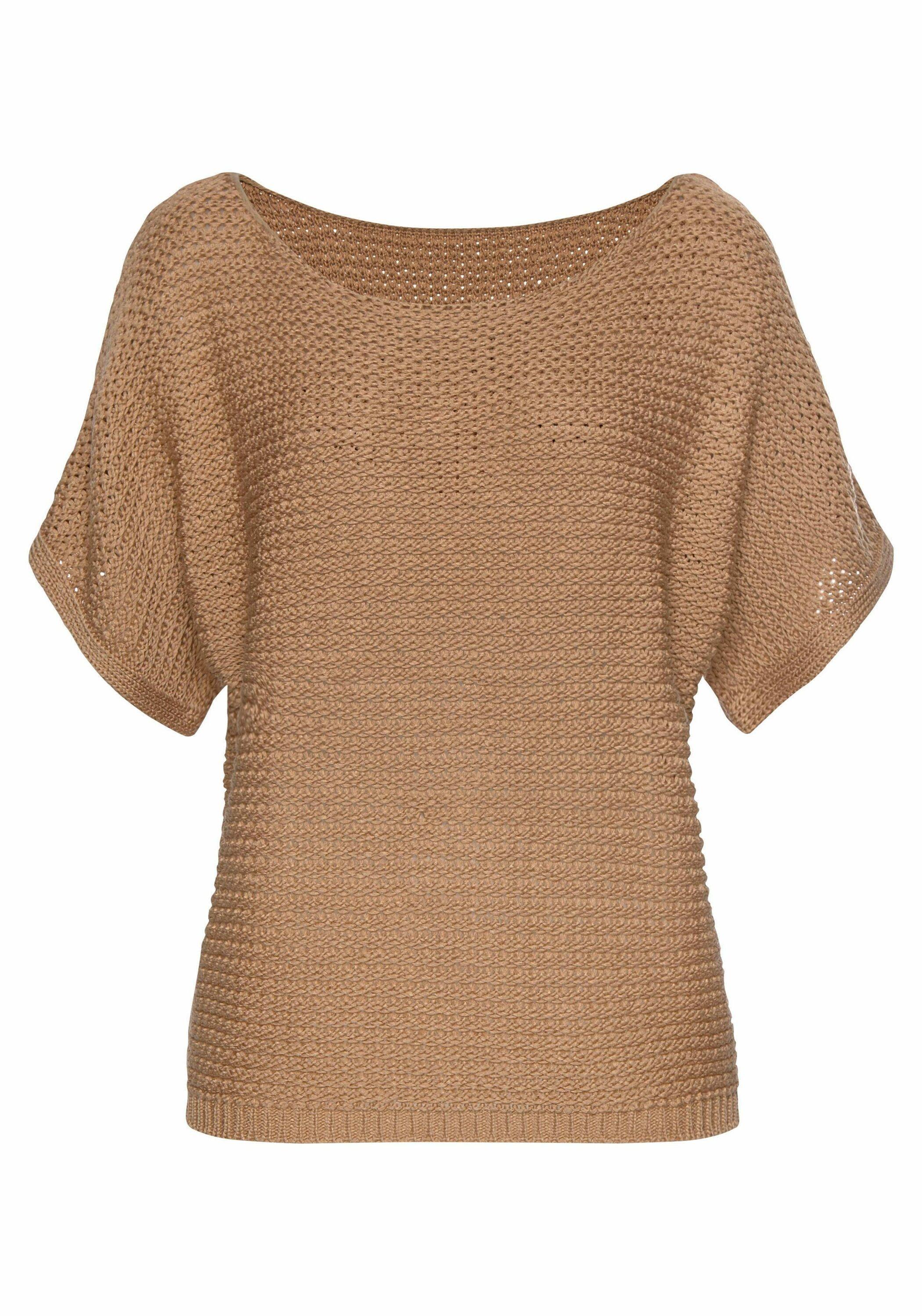 Locker gestrickter Sommerpullover von Lascana. Weiter Rundhalsausschnitt. Kurze Ärmel. Figurumspielende Passform. Strickware leicht transparent.