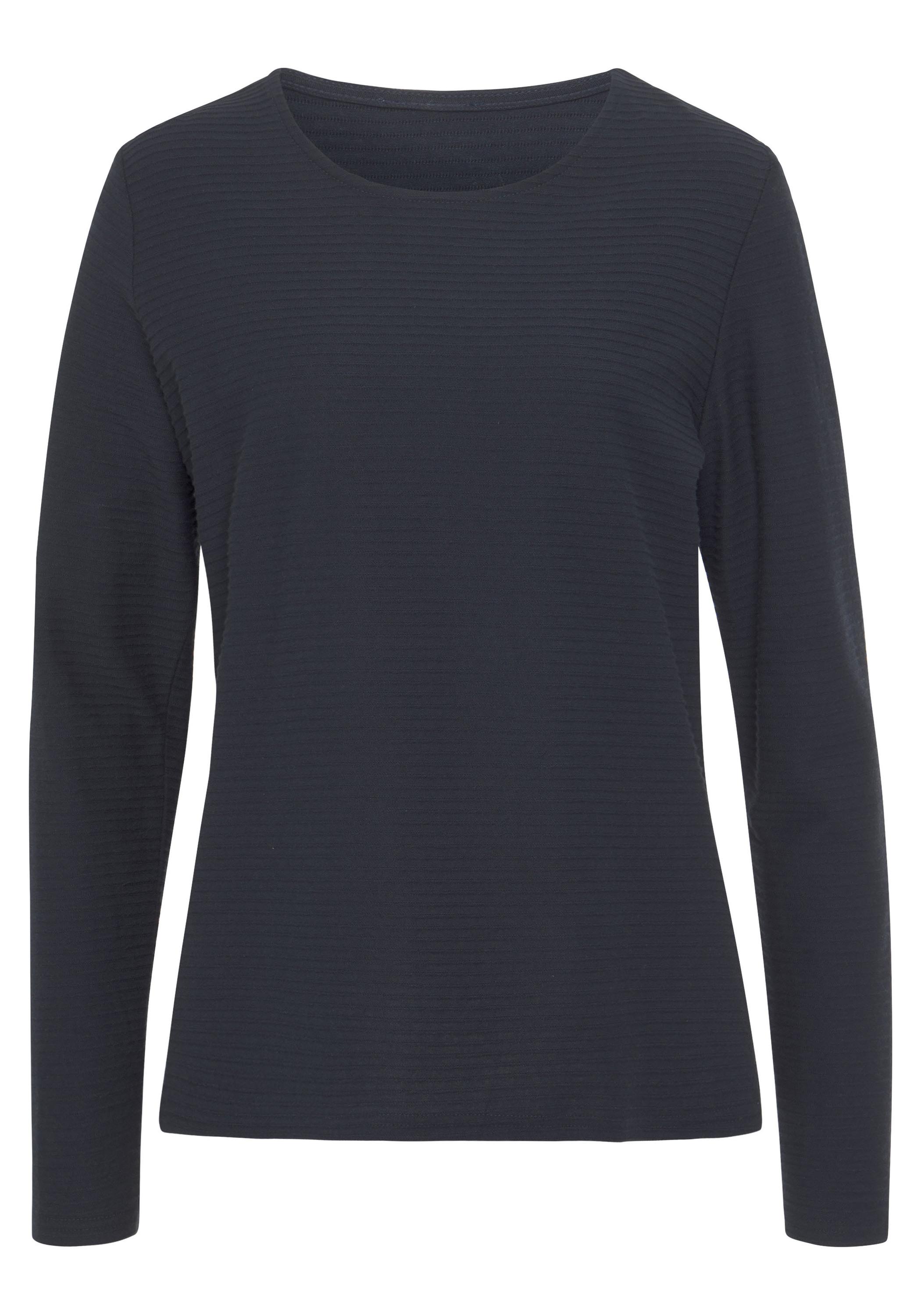 Weiches Langarmshirt von Lascana mit gestreiftem Strukturmuster und Rundhalsausschnitt. Gut zu kombinieren. Einsatz von Baumwolle, die die Initiative Cotton made in Africa unterstützt.