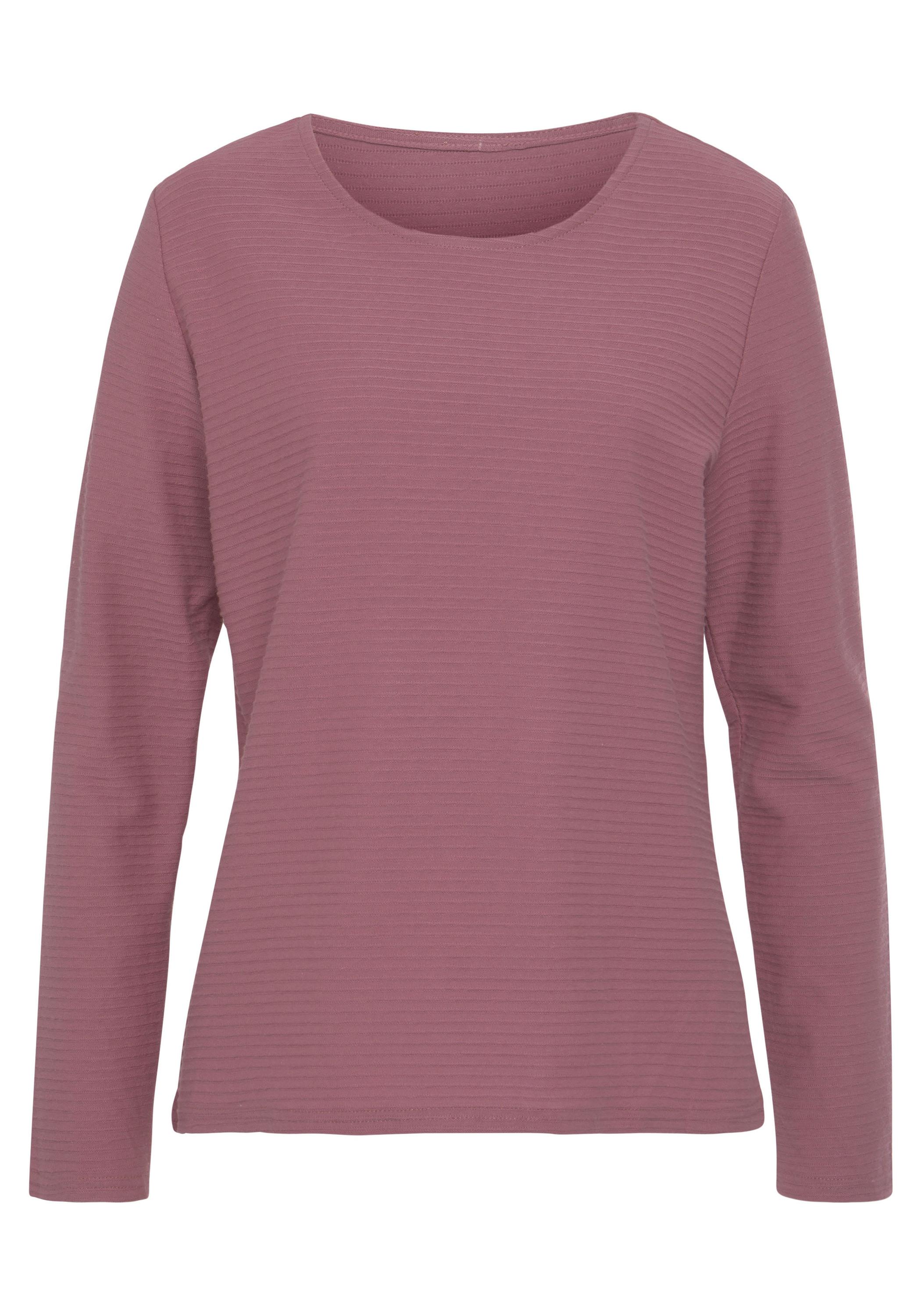 Weiches Langarmshirt von Lascana mit gestreiftem Strukturmuster und Rundhalsausschnitt. Gut zu kombinieren. Einsatz von Baumwolle, die die Initiative Cotton made in Africa unterstützt.