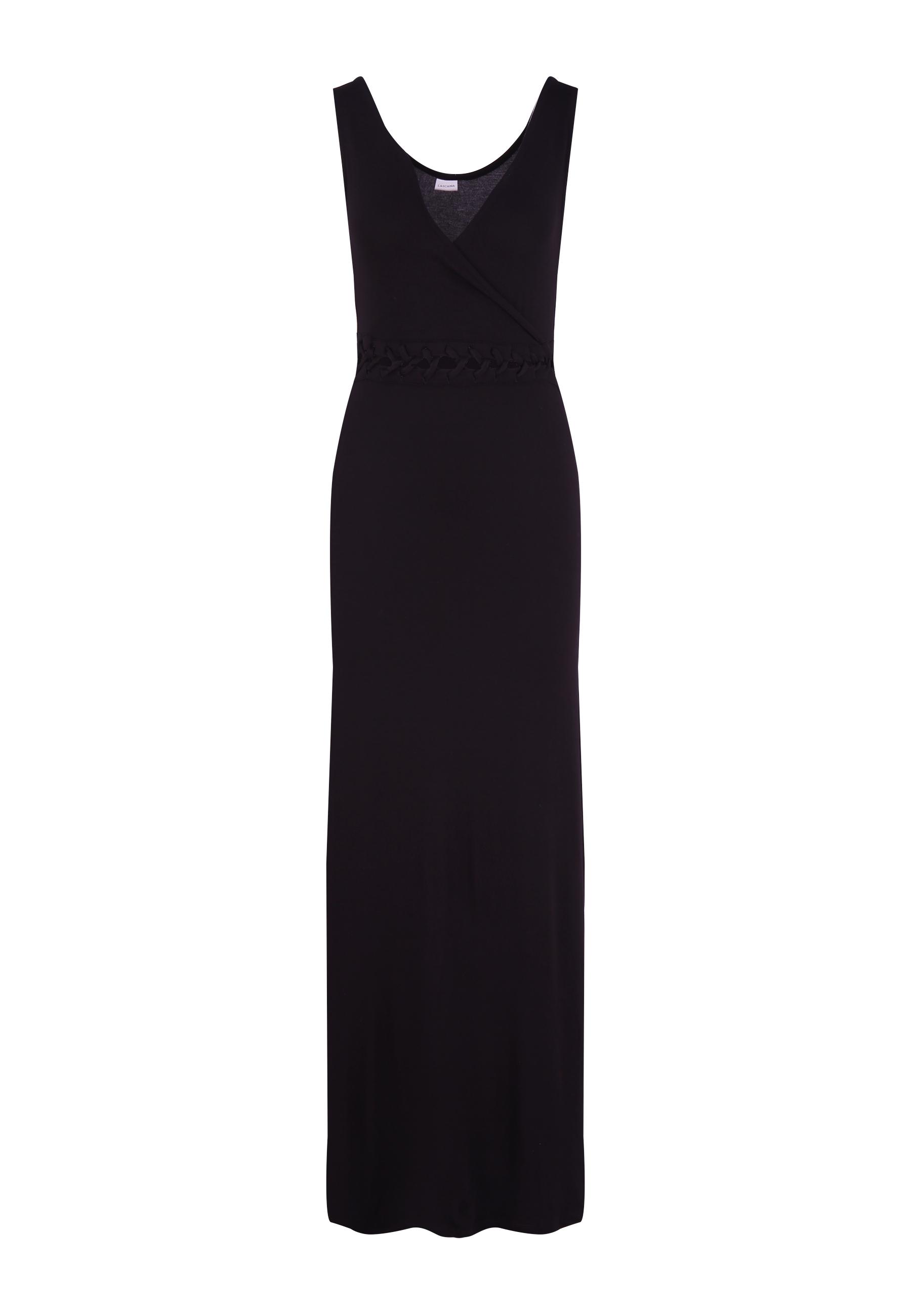 Maxikleid von LASCANA mit tiefem V-Ausschnitt. Breiter Gummizug mit Cut-outs und Schnürungen in der Taille. Rocklänge ca. 100 cm. Softe Jerseyware.