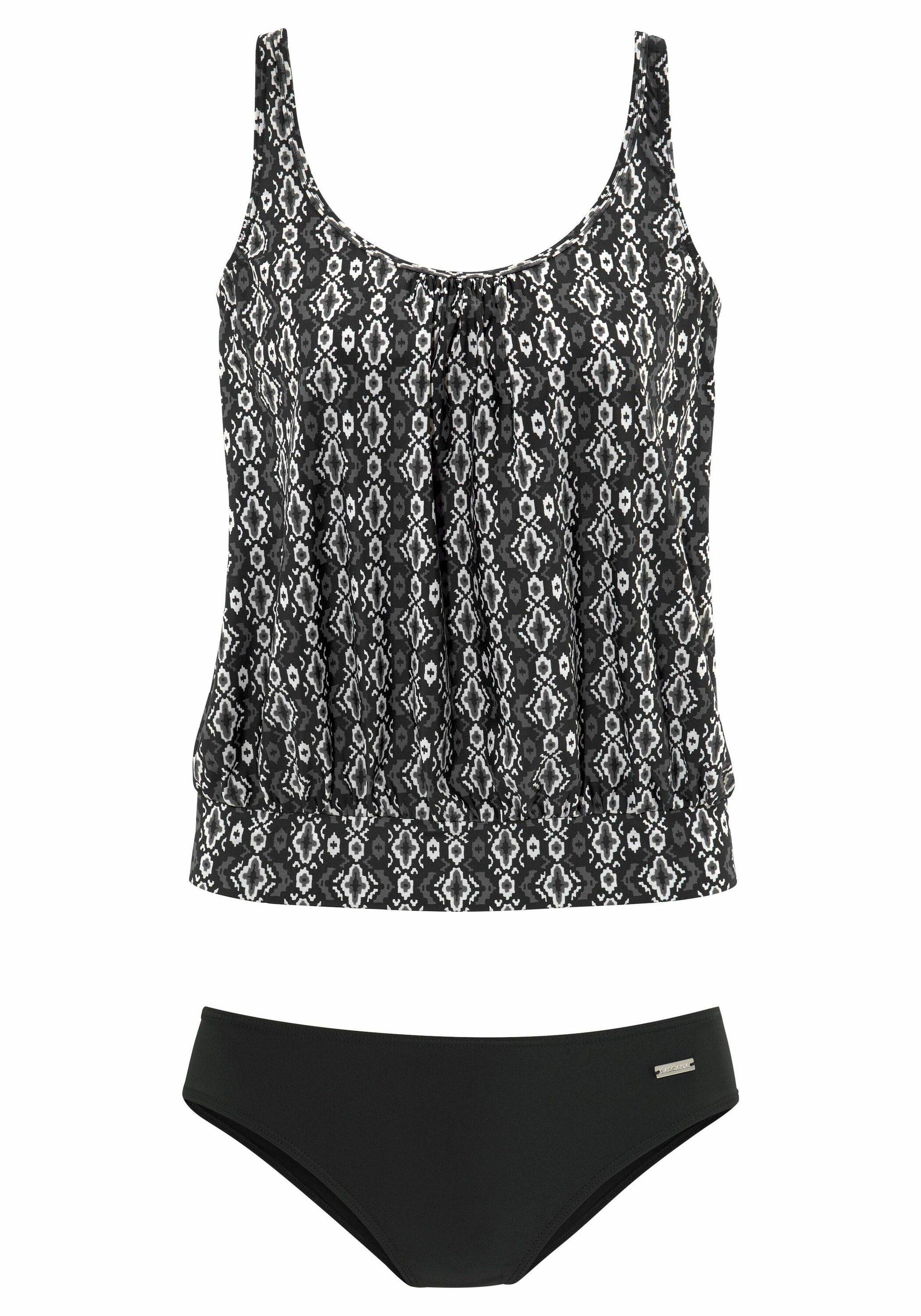 Bademoden von LASCANA im aktuellen Design. Figurfreundliches Top in aktueller Oversize Form: etwas weiterer, bauchbedeckender Schnitt mit eng anliegendem Abschluss. Eingearbeitete Softcups und Unterbrustgummi rundum. Miedereinsatz im Brustbereich und oberen Rücken. Verstellbare Träger. Bis D-Cup geeignet. Hose vorn gefüttert.