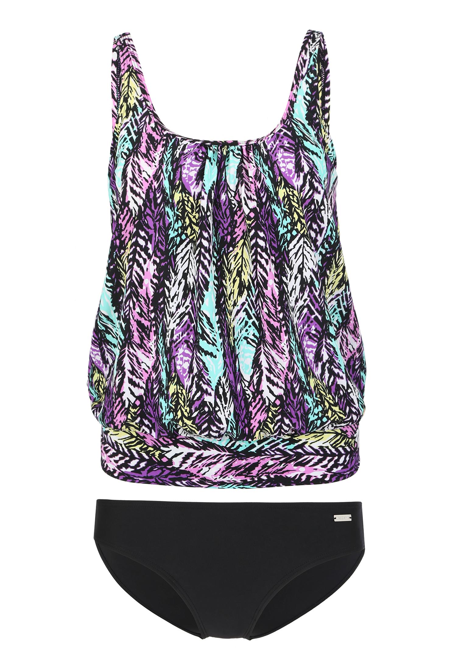 Tankini von LASCANA im fanatasievollem Design mit figurfreundlichem Oversize-Top: etwas weiterer Schnitt mit eng anliegendem Abschluss. Eingearbeitete Softcups, Unterbrustgummi rundum und Miederverstärkung im Brustbereich und oberen Rücken. Verstellbare Träger. Bis D-Cup geeignet.