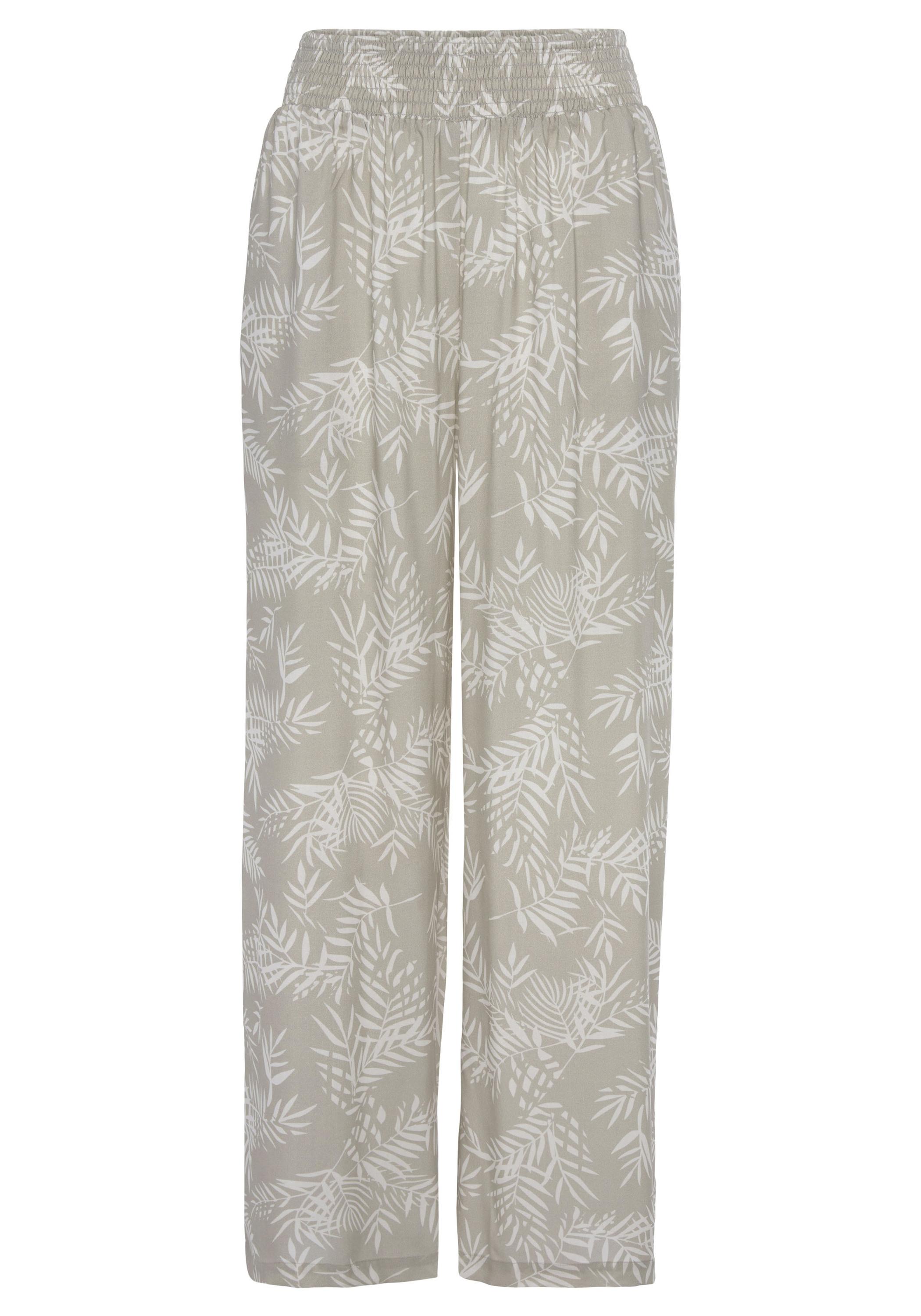 Weiche Palazzohose von Lascana mit Allovermuster und breitem Smokbund. Mit Seitentaschen. Gerader Saumabschluss. Modisch weit geschnitten. Für Freizeit und Urlaub. Gekreppte Qualität.