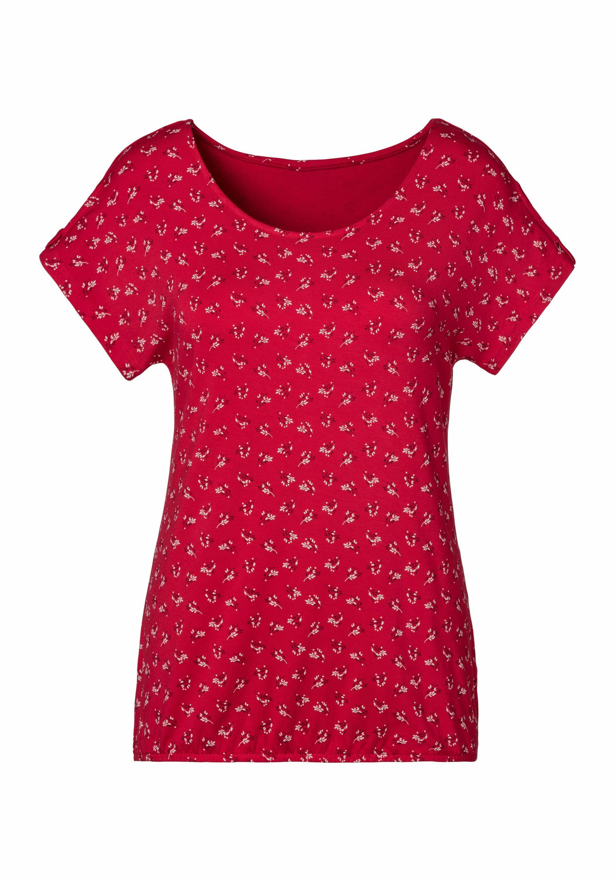 Lascana Shirt mit kleinem Knotendetail und Cut Out am Ärmel. Gummizug am Saum für eine lässige Passform. Aus weich fließender Viskose-Qualität mit Elasthan.