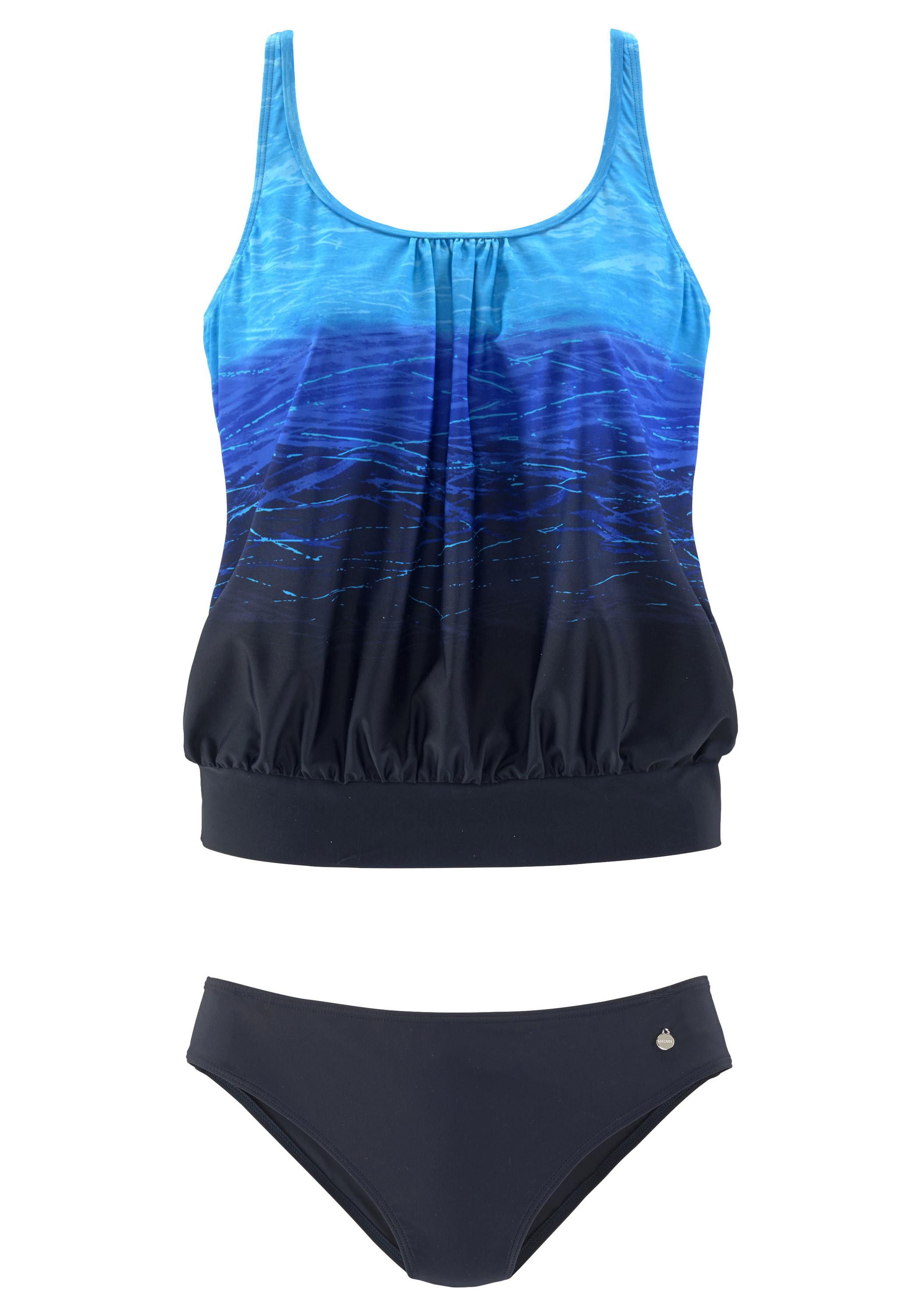 Im wunderschönen Druckdesign mit Farbverlauf. Mit figurfreundlichem Top in bauchbedeckender und locker fallender Oversive-Form mit eng anliegendem Bündchen. Wattierte Cups, verstellbare Träger und Unterbrustgummi rundum. Miederverstärkung im Brustbereich und im oberen Rücken. Bis D-Cup geeignet.