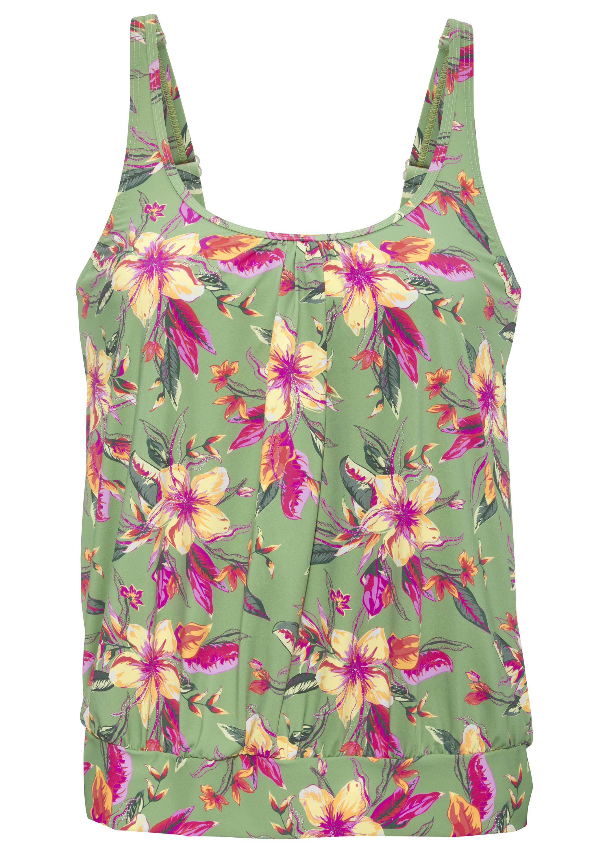 Lässiges Tankini-Top von Lascana, geeignet bis Cup D. Florale Optik. Integrierte Softcups für ein schönes Dekolleté. Halt durch Unterbrustgummi. Kombinationsfreudig: individuelle Strandlooks nach Mix-Kini-Prinzip. Angenehmes, elastisches Polyamid.