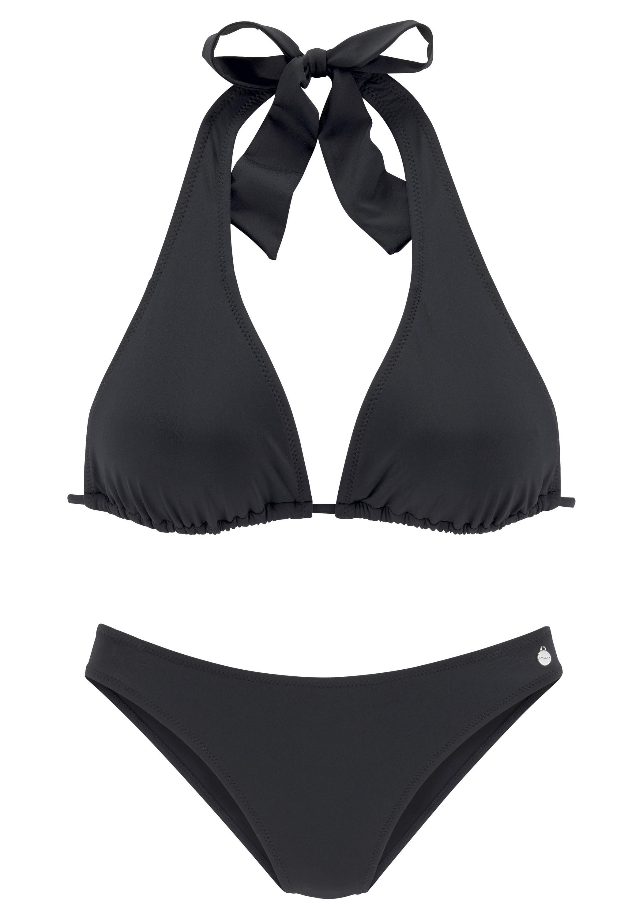 Unifarbener Triangel-Bikini von Lascana mit herausnehmbaren Softcups. Im Rücken und Nacken zu binden für eine individuelle Passform. 5 Tragevarianten möglich. Elastische Qualität mit recyceltem Polyamid.