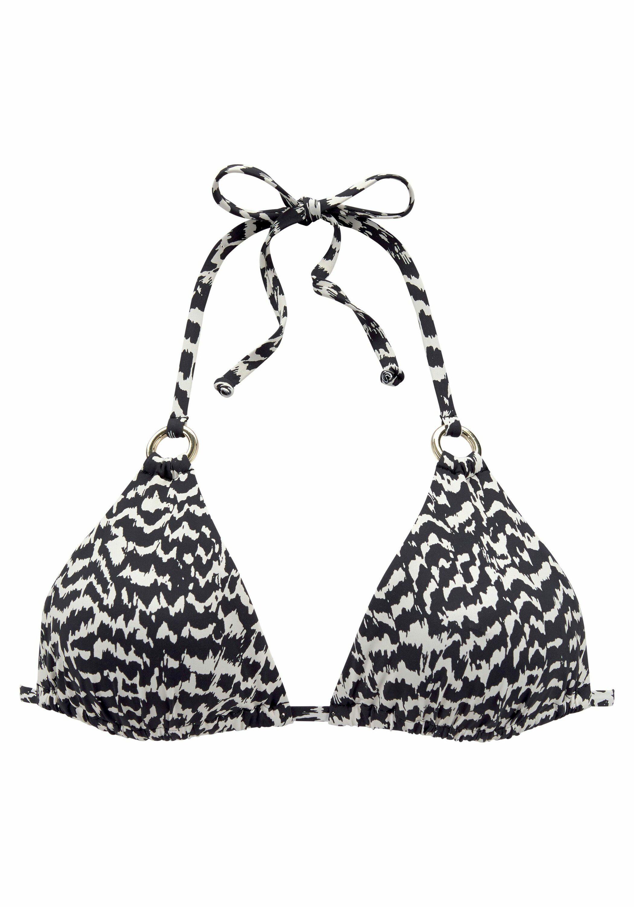 Hübsches Triangel-Bikinitop von Lascana mit trendigem Alloverprint und hübschen Zierringen. Neckholder und Seitenträger zum Binden. Herausnehmbare Softcups. Aus der Mix-Kini-Serie. Weiche Microfaser.
