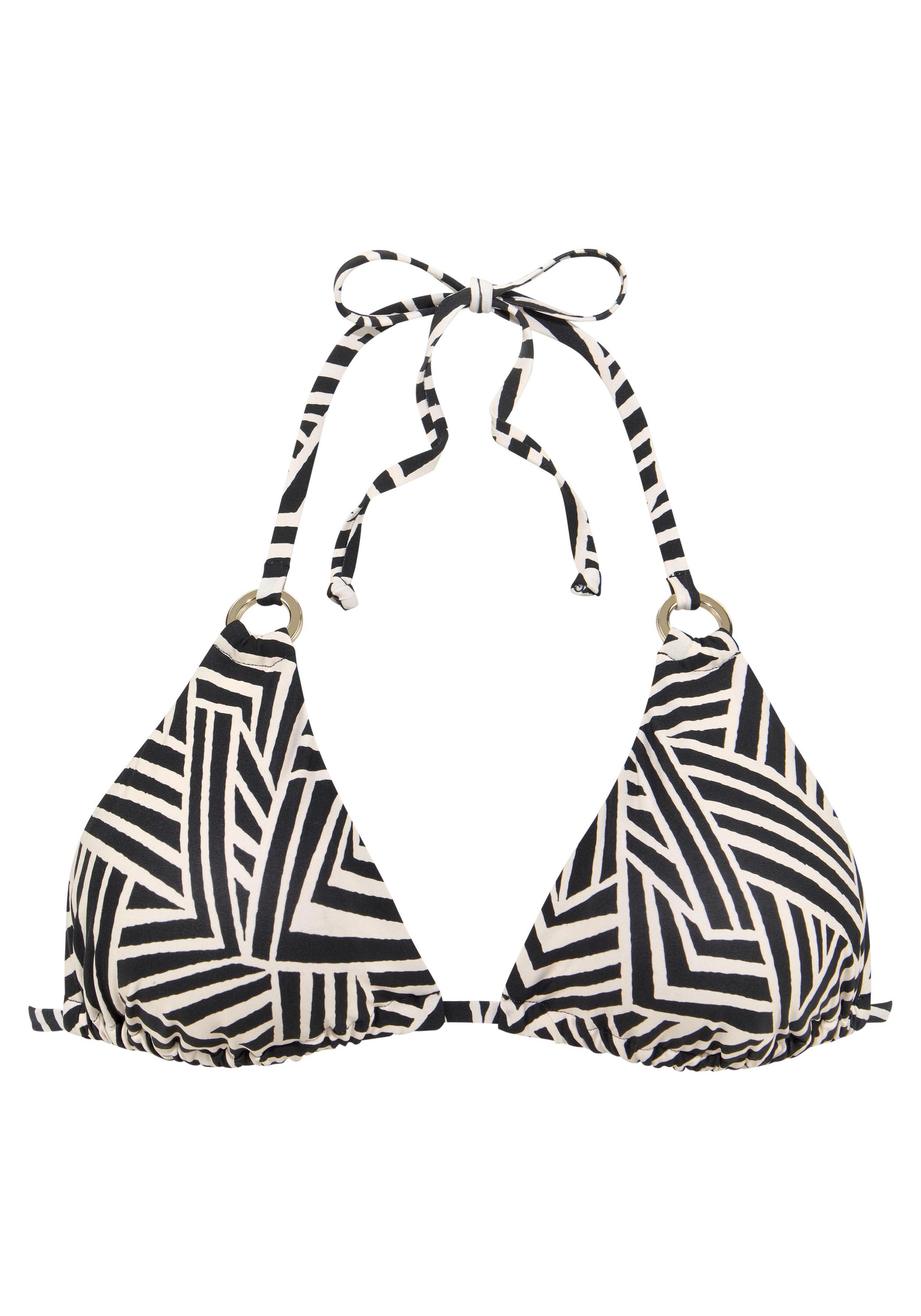 Triangel-Top von Lascana. Grafisches Druckdesign mit Metallic-Zierringen. Herausnehmbare Cups. Mix-Kini. Trageangenehme Qualität mit recyceltem Polyamid.