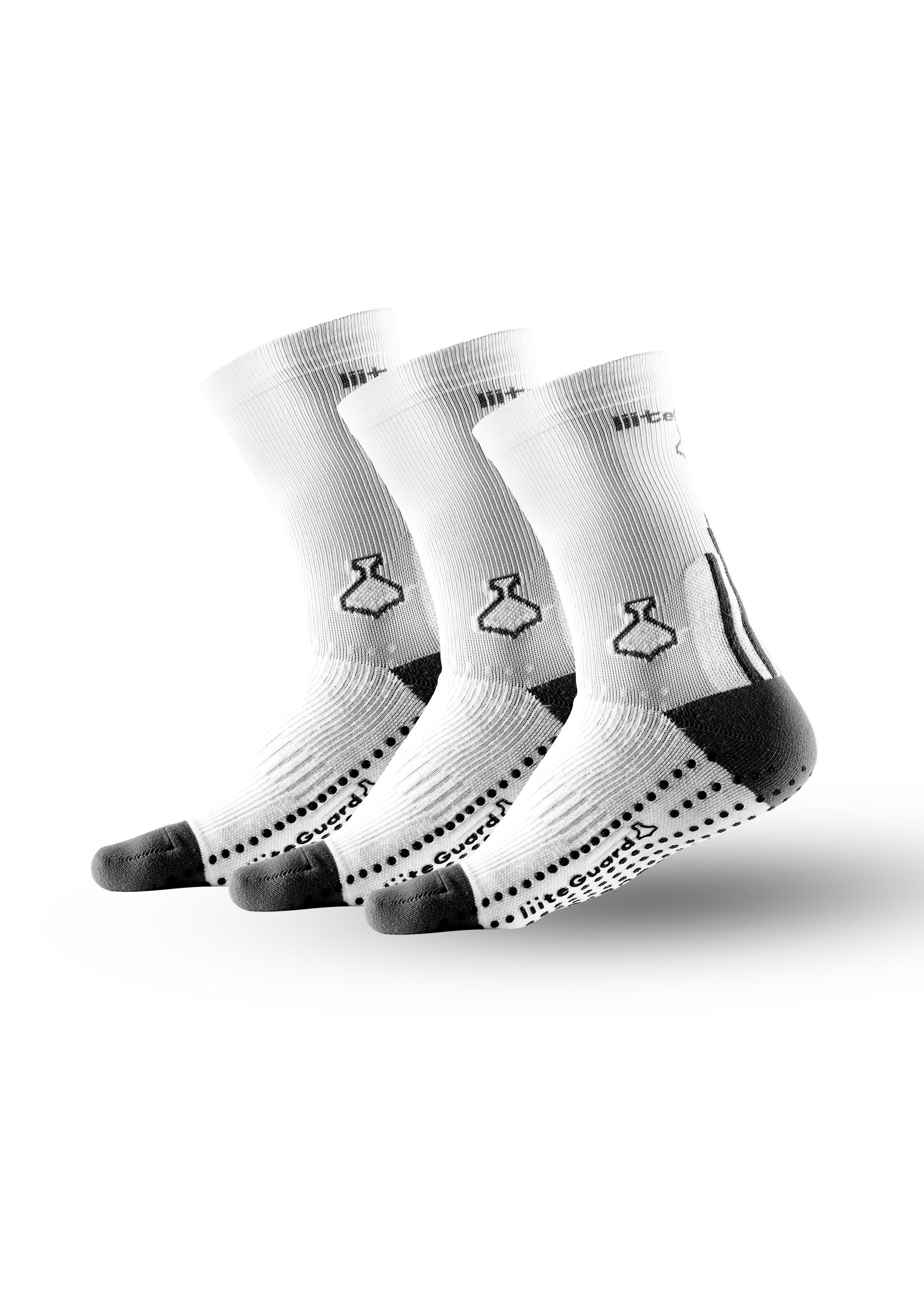 Holen Sie sich maximale Unterstützung um Knöchel und Achillessehne mit unseren mittelhohen PRO-TECH-Kompressionssocken. Die strategisch platzierten Silikonnoppen sorgen für einen stabilen Halt im Schuh und helfen Blasen zu vermeiden. Sie eignet sich besonders gut für Sportarten mit anspruchsvollen Richtungswechseln.