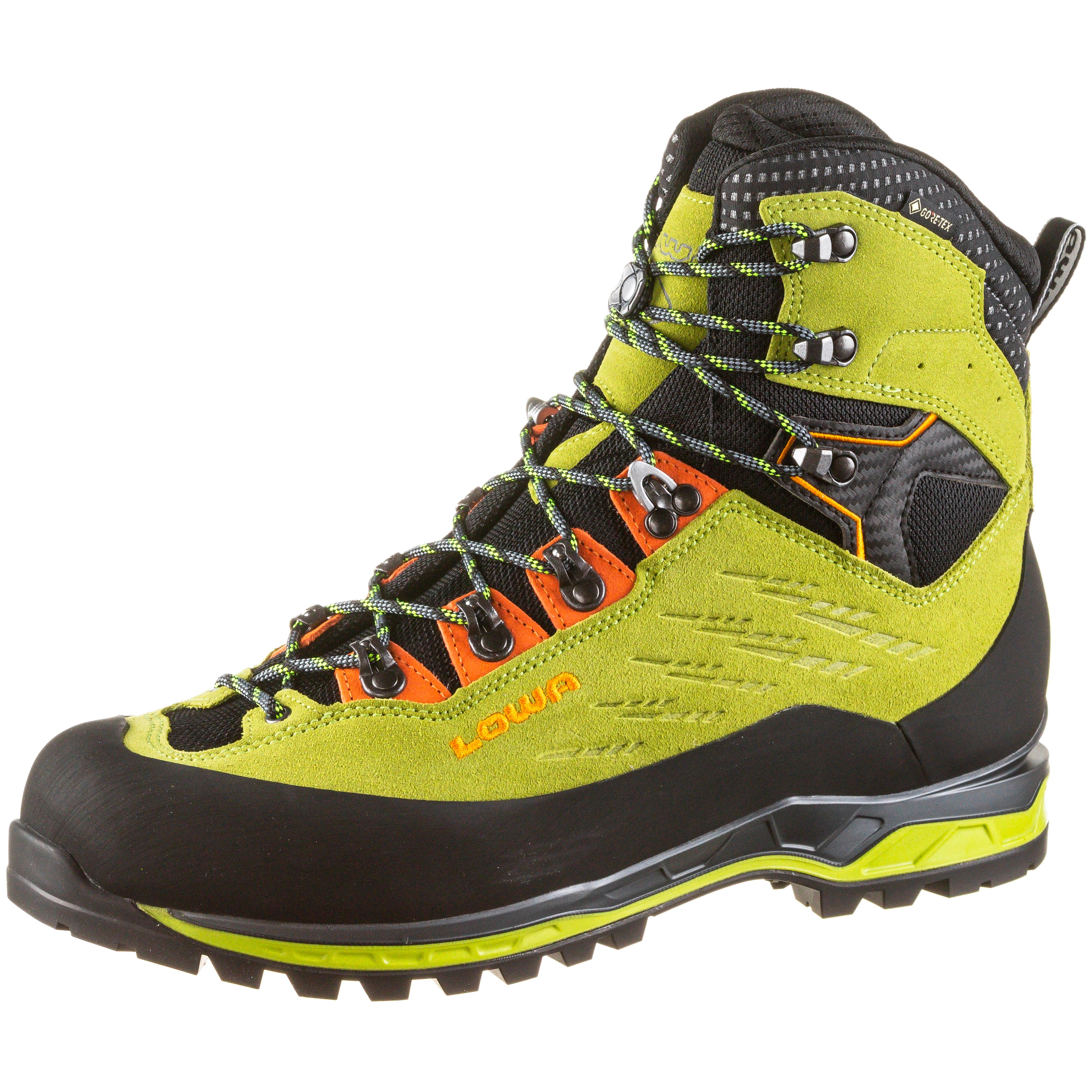 Funktionale Wanderschuhe mit GORE-TEX Membran, für dauerhaft wasser- und winddichte sowie atmungsaktive Funktion; der Geröllschutz im Zehenbereich sorgt für erhöhten Schutz im Gelände; strapazierfähiges Obermaterial aus Echtleder; Schnürung mit Kugellagerösen, welche die Reibung der Schnürsenkel minimiert und so ein geschmeidiges verschließen ermöglicht; mittelhoher Schaft mit asymmetrischer Polsterung, für eine optimale Druckverteilung; Gewicht: ca. 1784 g (Gr. 43,5/ Paar); wiederbesohlbare, extrem abriebfeste Vibram®-Außensohle, mit griffigem Profil für ein natürliches Abrollverhalten.