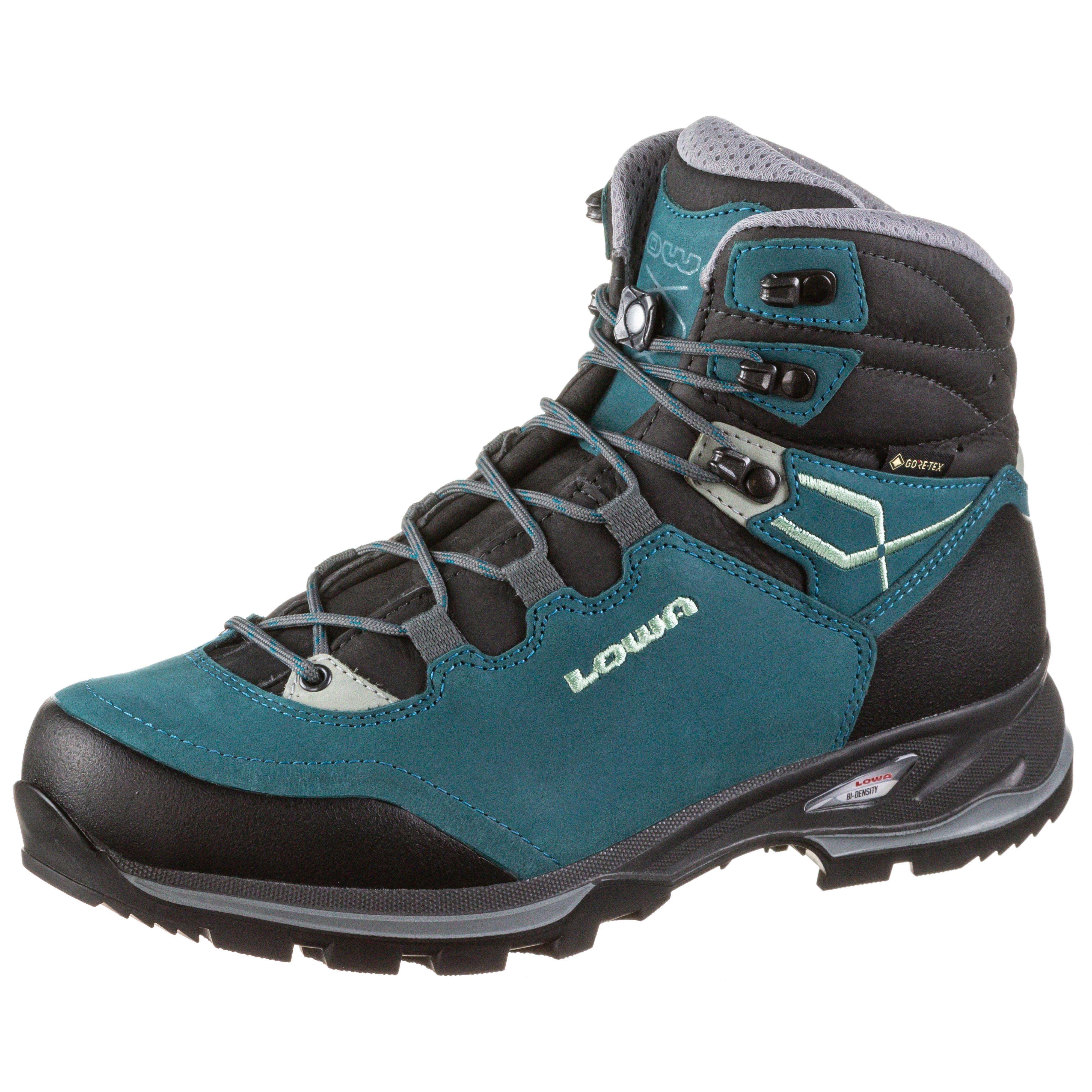 Angenehm leichter Wanderschuh aus Leder mit Besatz an besonders beanspruchten Stellen, ist hoch abriebfest und hält mit GORE-TEX Futter die Füße auch auf anspruchsvollen Touren trocken; spezieller Damenleisten; weich gepolsterter Schaftabschluss, für mehr Bewegungsfreiheit hinten niedriger geschnitten; robustes X-Lacing Schnürsystem zur idealen Anpassung an den Fuß; haltgebende Fersenkappe; Zehenschutz; Textilfutter; herausnehmbare, fein perforierte Einlegesohle mit klimakontrollierender Wirkung für dauerhaft hohen Tragekomfort; Bi-Density-Laufsohle aus Gummi mit tiefem Profil für Traktion auch in unwegsamem Gelände; Gewicht: 1.070 g (Größe 38 / Paar).