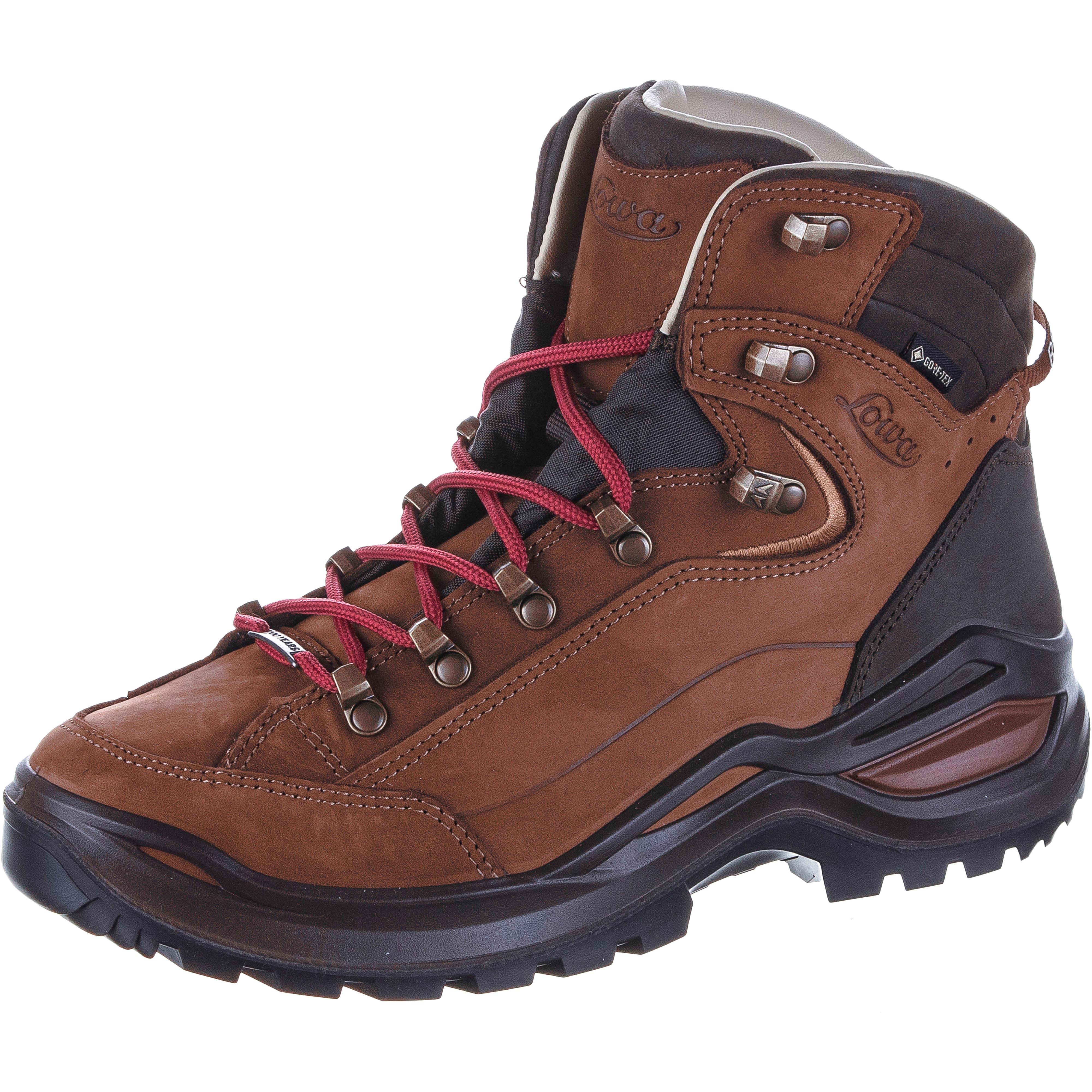 Limitierte Wanderschuhe aus der Jubiläumsedition, mit strapazierfähigem Obermaterial aus Echtleder; atmungsaktive und wasserdichte GORE-TEX Membran; Vorfuß- und Schaftbereich lassen sich unterschiedlich fest schnüren; gepolsterter Zungen-und Schaftbereich; stabilisierende Monowrap® Rahmenkonstruktion; zweischichtige Zwischensohle, erste Schicht mit LOWA® DYNAPU®, sorgt für eine optimale Dämpfung und Energierückgabe, zweite Schicht mit LOWA® SUPPORT FRAME, um eine ausgezeichnete Stabilität und Führung zu gewährleisten; extrem abriebfester Vibram®-Außensohle aus Gummi; Gewicht: ca. 964 g/Gr. 38 (Paar).