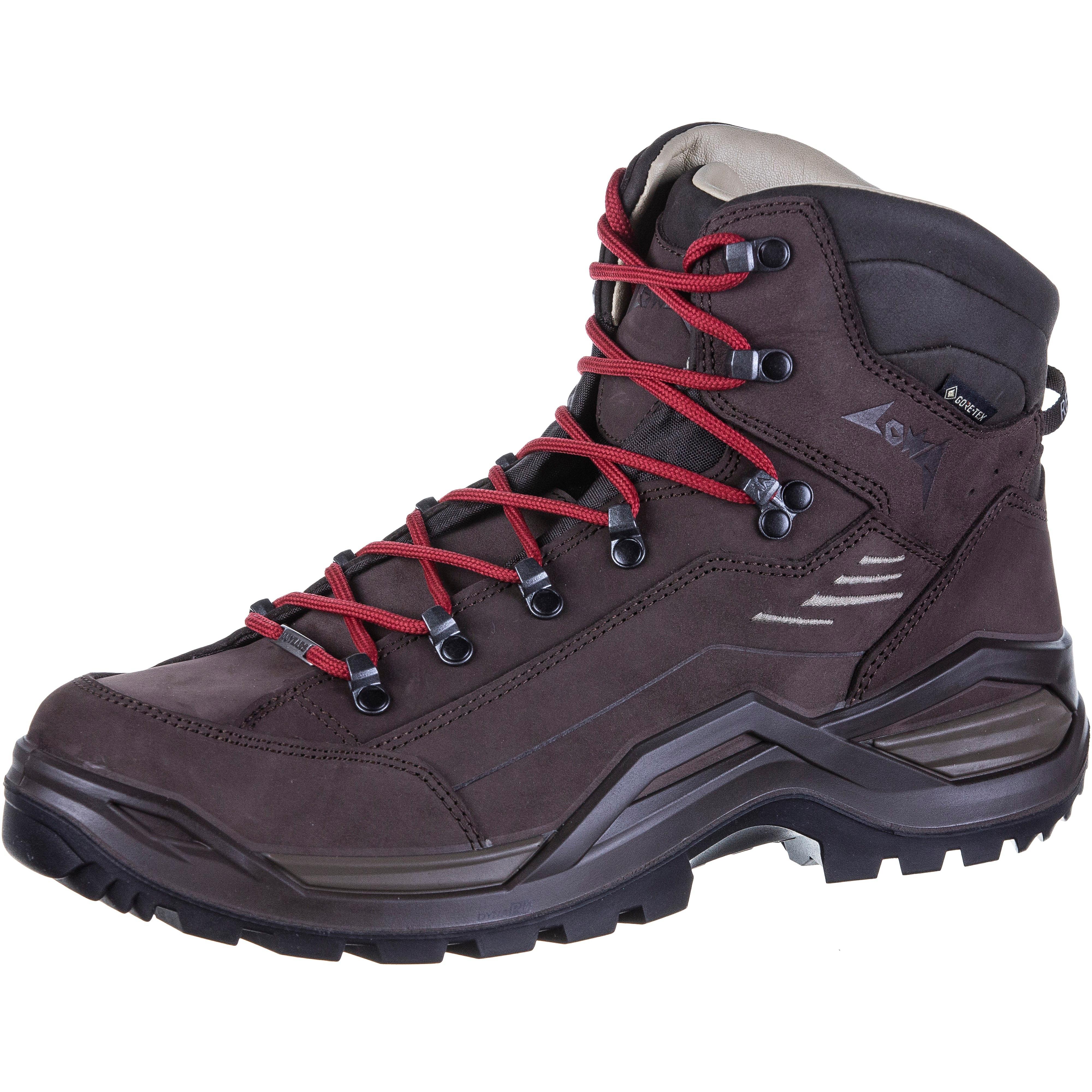 Wanderschuhe mit dauerhaft wasser- und winddichter sowie atmungsaktiver GORE-TEX Membran; strapazierfähiges und wetterbeständiges Echtleder; Schnürung mit Metallösen und Haken im Schaftbereich; verstärkter Zehenbereich zum Schutz vor Geröll und Ähnlichem; stabilisierende Fersenkappe; die Zuglasche erleichtert das An- und Ausziehen; Mittelsohle mit DynaPU®-Schaum für eine hervorragende Dämpfung und Rebound-Eigenschaften; griffig profilierte und extrem abriebfester Vibram®-Außensohle; gepolsterter Schaft; wärmendes Futter; herausnehmbare Einlegesohle; Schuhweite: normal; Gewicht: ca. 1304 g/Gr. 43 1/2 (Paar).