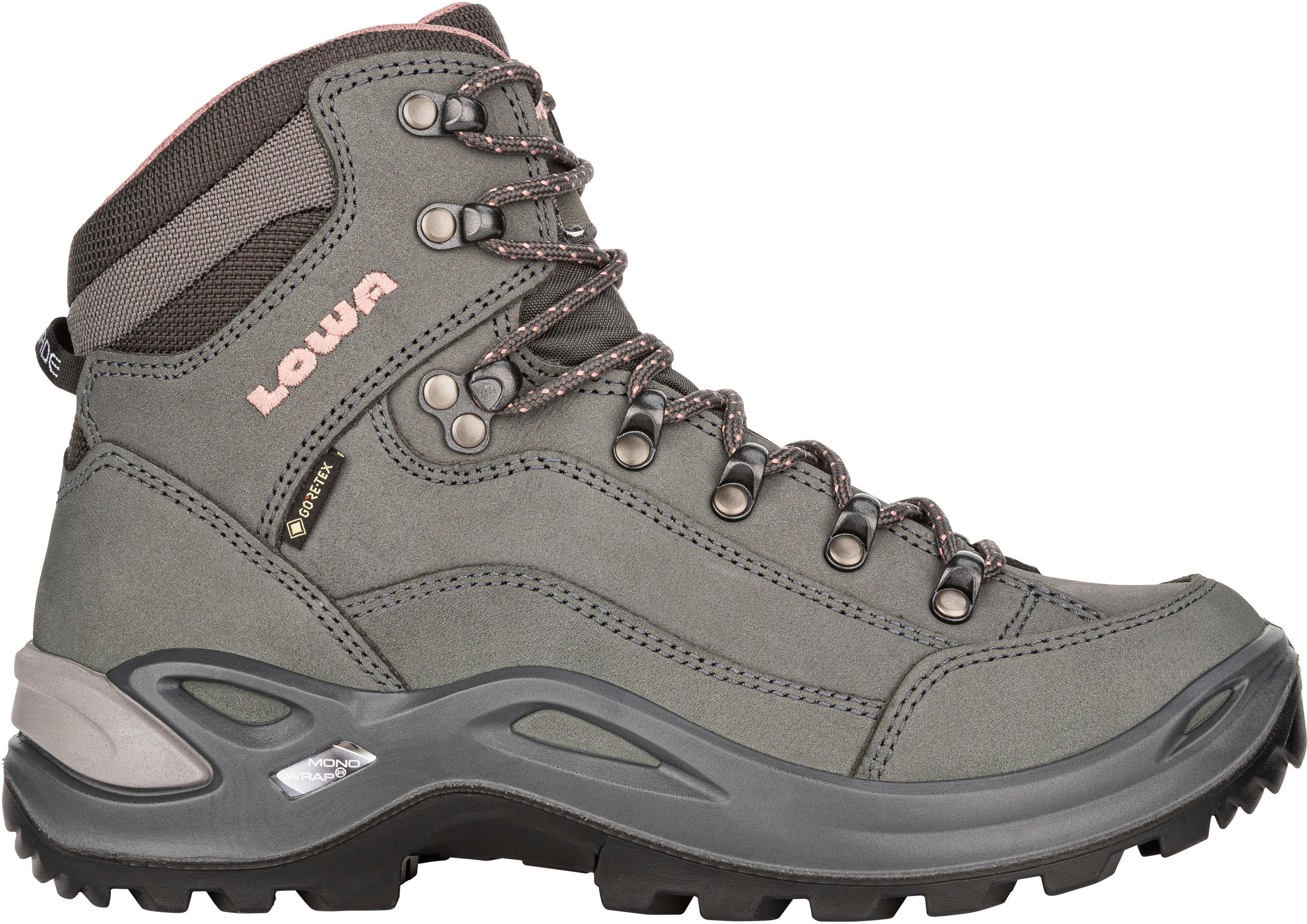 Wanderschuhe aus hochwertigem Nubukleder; mit dauerhaft wind- und wasserdichter sowie atmungsaktiver GORE-TEX Membran; erhöhter Schaft, speziell an die weibliche Anatomie angepasst; Zwei-Zonen-Schnürung für individuelle, getrennte Anpassung von Vorfuß und Schaft; Double Injection-Zwischensohle aus dämpfendem PU, wird direkt an den Oberschuh gespritzt; dreidimensionales Design der Mittelsohle mit leicht hochgezogenem Lowa-Monowrap®-Rahmen zur Unterstützung und Führung des Fußes; Außensohle aus Vibram® Evo-Gummimischung für optimalen Grip auf unterschiedlichen Terrains; normale Schuhweite; Gewicht: ca. 950 g (Paar); Made in Europe.