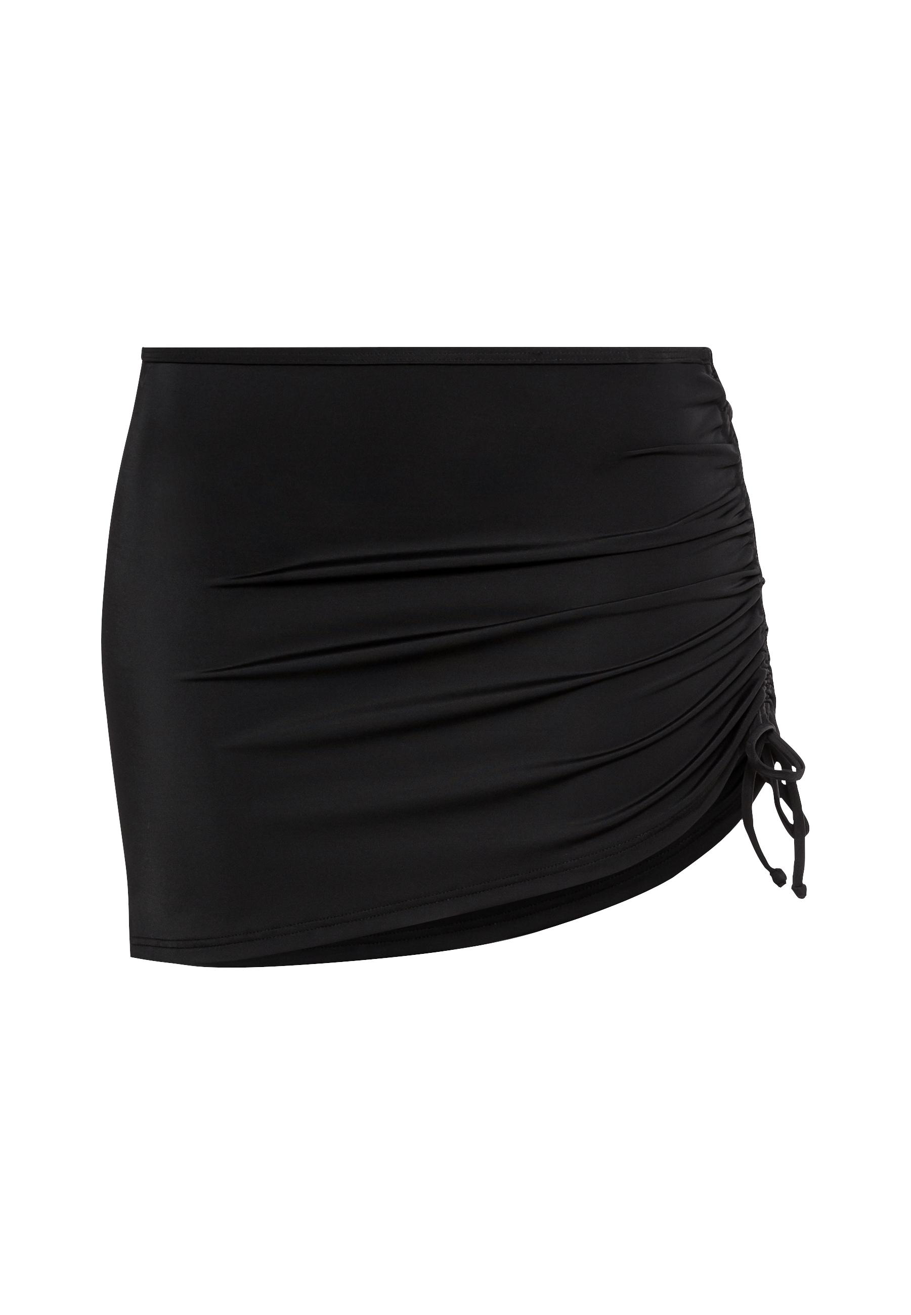 Cooler unifarbener Baderock von LSCN by Lascana. Knapp und eng anliegend geschnitten. Tunnelzug seitlich. Asymmetrischer Rocksaum. Mix-Kini-Prinzip. Trageangenehme Qualität mit recyceltem Polyamid.