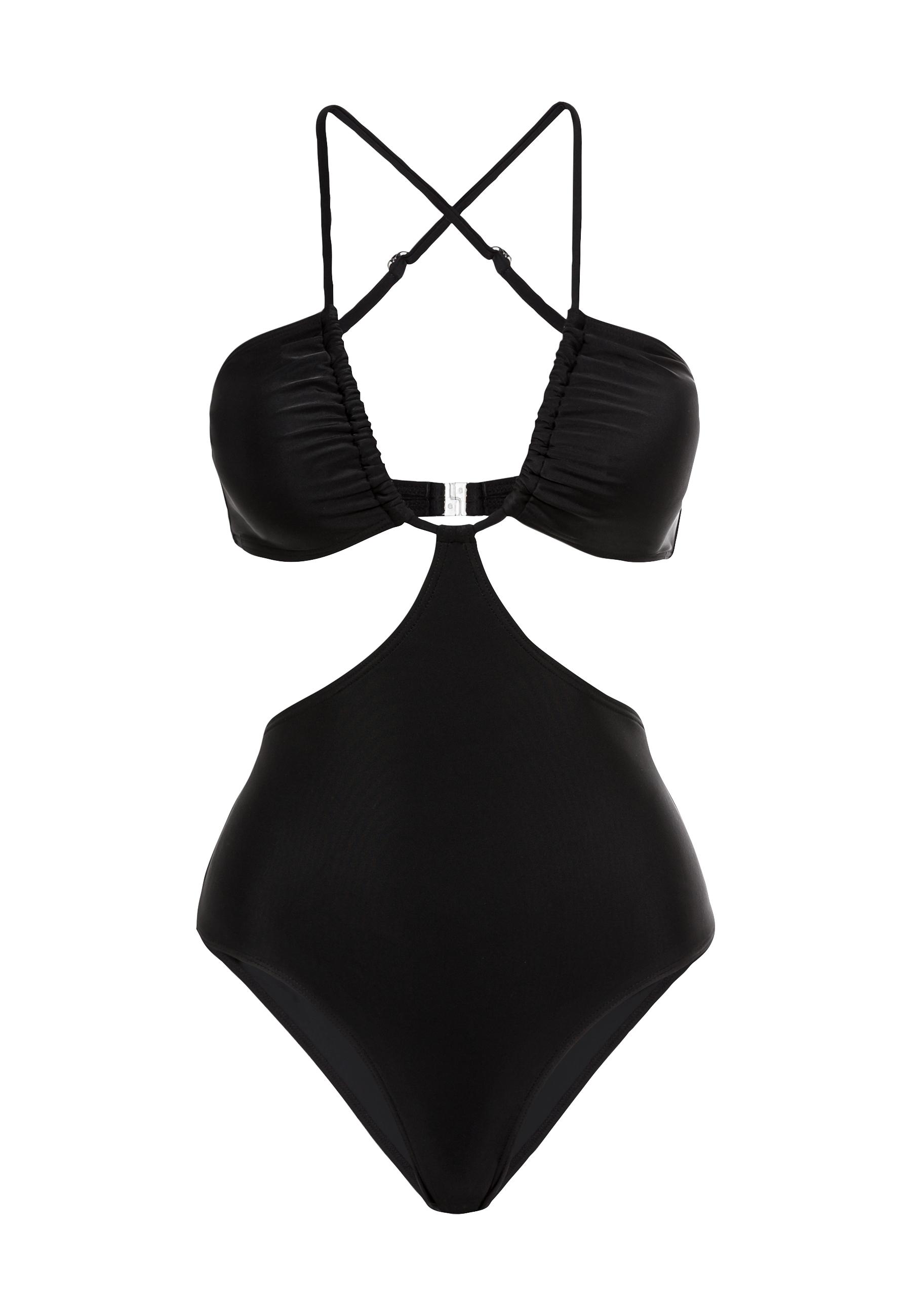 Raffinierter unifarbener Badeanzug von LSCN by Lascana mit Cut-outs. Raffungen am Dekolleté. Träger mit verschiedenen Tragevarianten. Höherer Beinausschnitt. Trageangenehme Qualität mit recyceltem Polyamid.
