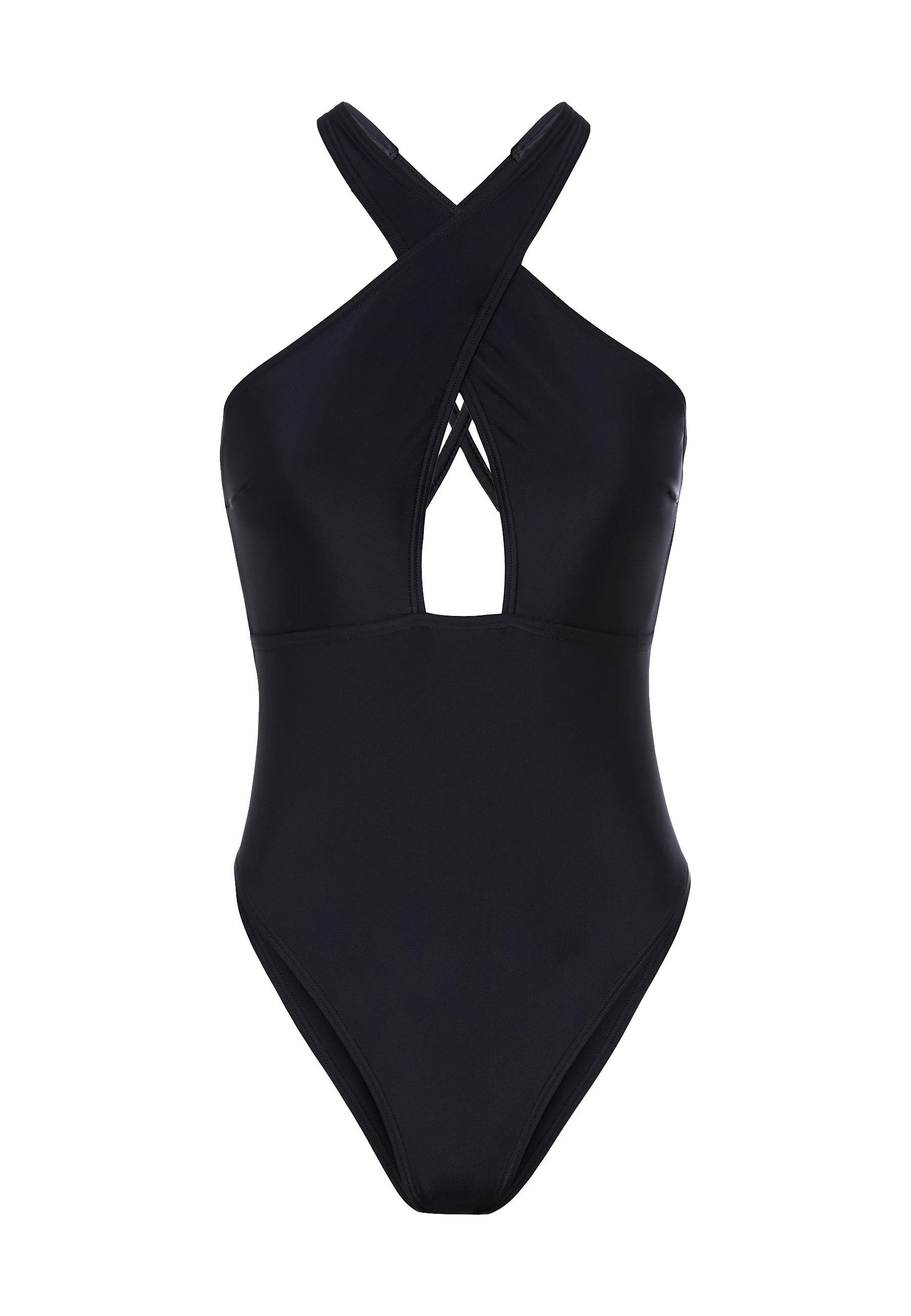 Verführerischer unifarbener Neckholder-Badeanzug von LSCN by Lascana. Verstellbare Träger, zwei Tragevarianten möglich: gerade oder gekreuzt. Auch perfekt zu Hosen oder Röcken. Angenehmes Material mit recyceltem Polyamid.