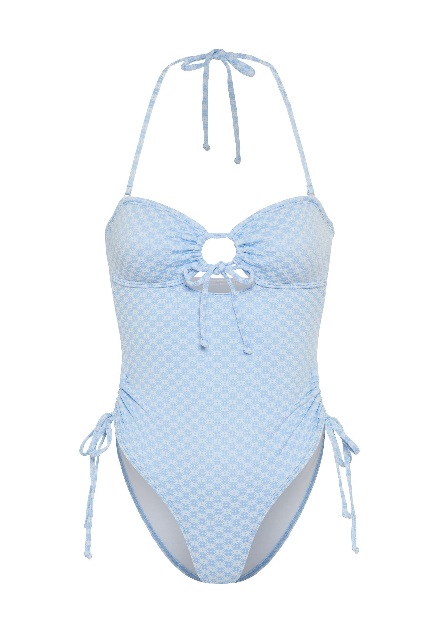 Variabler Badeanzug von Lascana. Cut-Out und Bindedetails vorn. Seitlich regulierbare Raffungen. Als Neckholder oder trägerlos tragbar. Aus trendiger Strukturware.