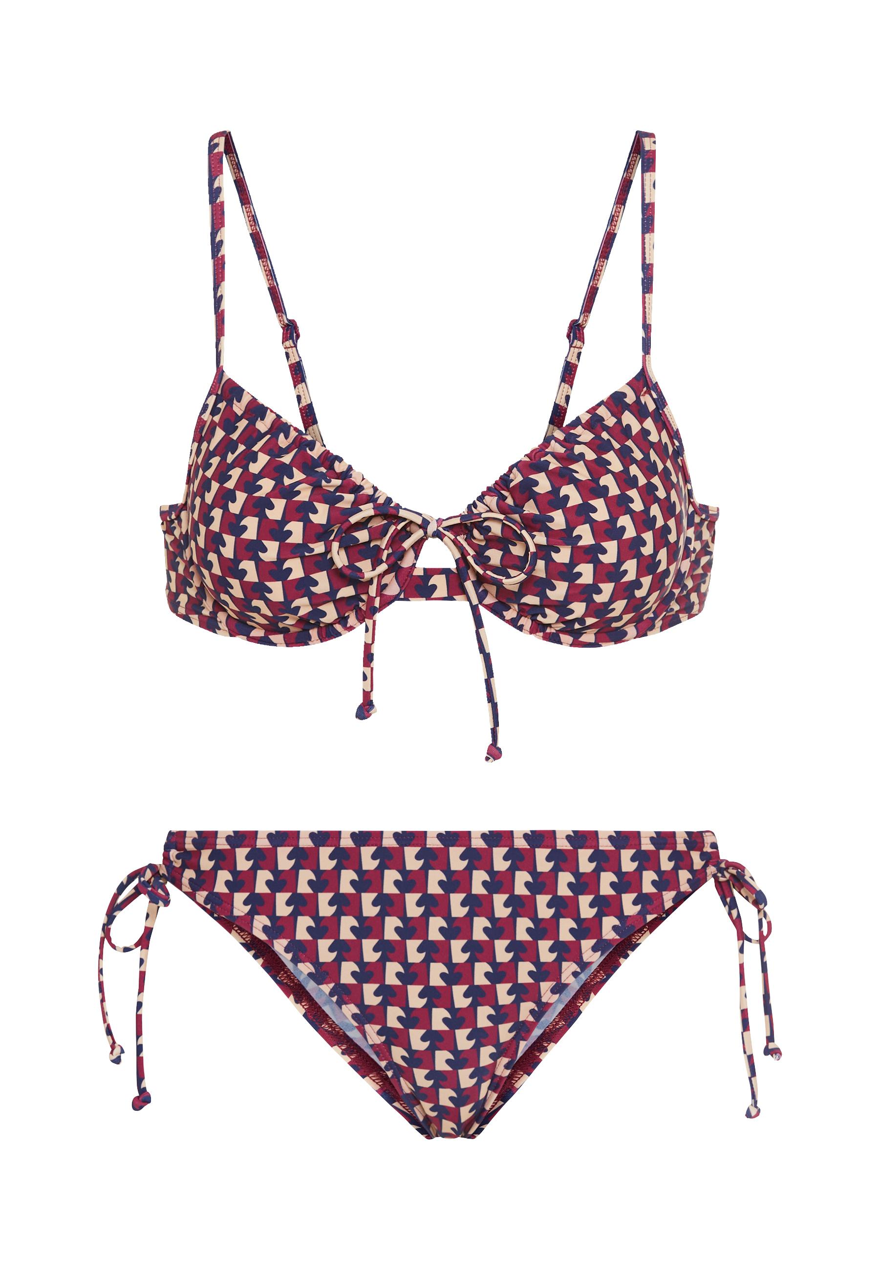 Stylisher Bügel-Bikini von Lascana. Trendiger Allover-Print. Top vorne mit Bindeband regulierbar. Herausnehmbare Softcups. Hose knapp mit seitlichen Bindebändern. Mit recyceltem Polyamid.