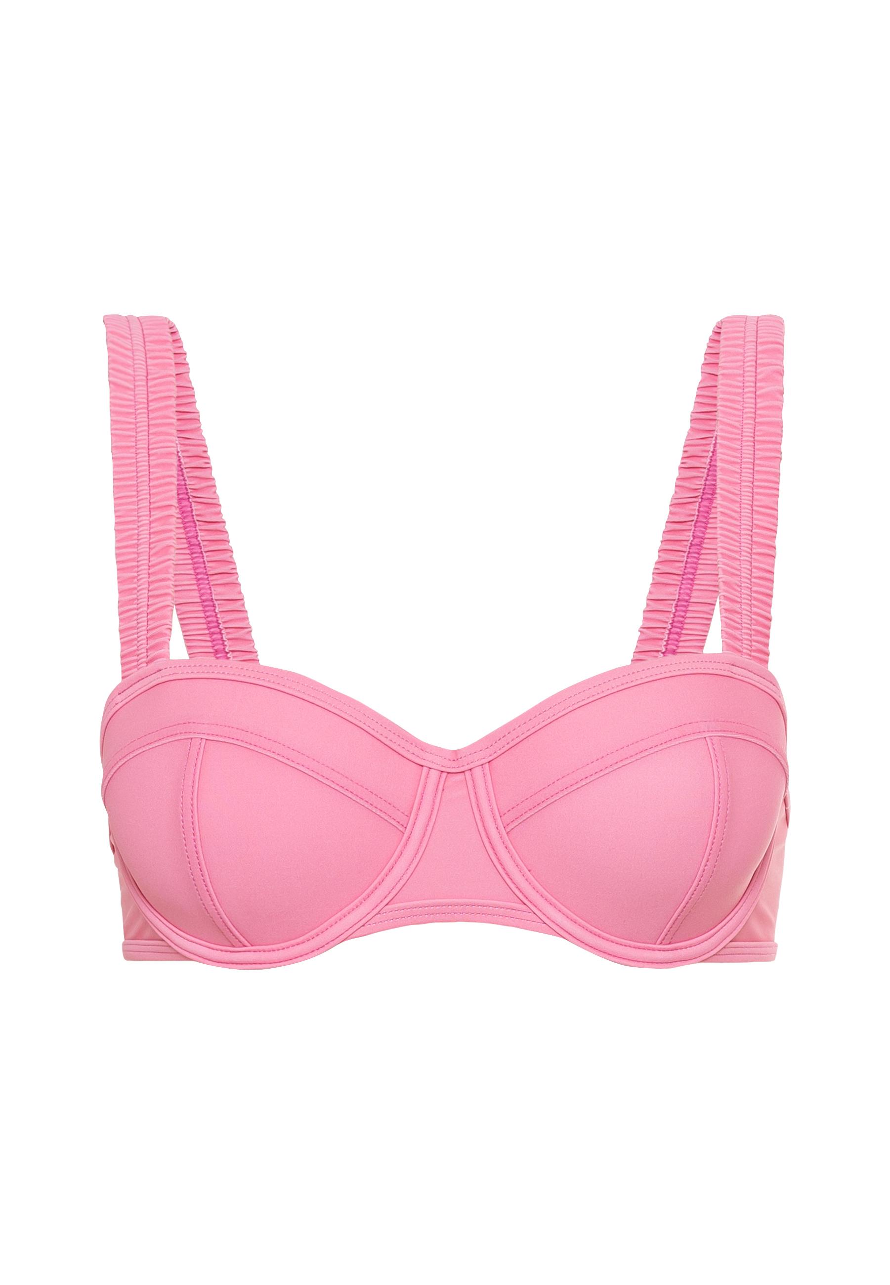 In trendiger Unifarbe: Bügel-Bikinitop von LSCN by Lascana. Wattierte Cups. Elastische Träger mit dekorativer Raffung. Im Rücken mit Verschluss. Moderne Passform. Material mit recyceltem Poyamid.