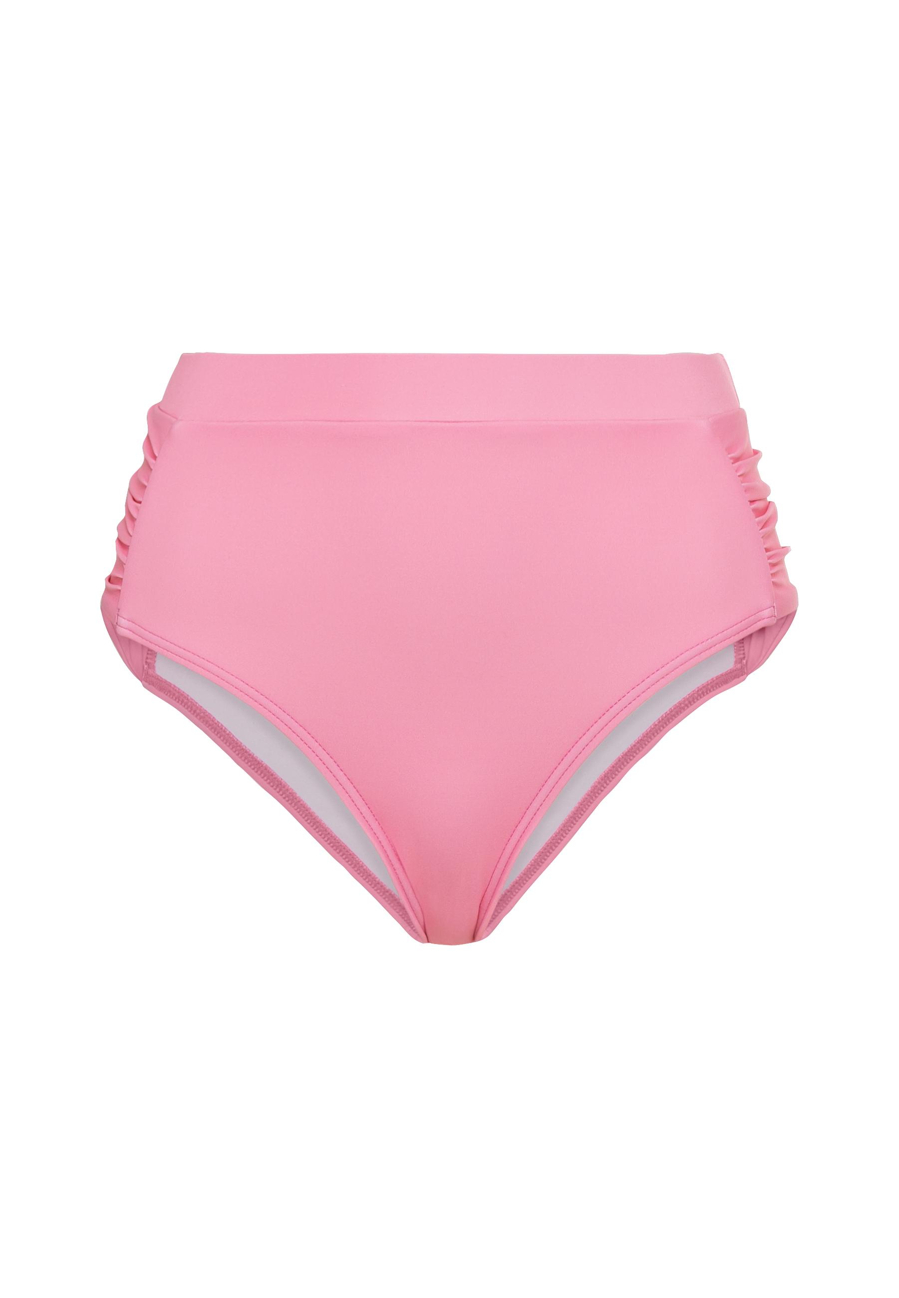 Bikinihose von LSCN by Lascana. Hohe Leibhöhe mit Elastikbund. Modische Raffungen an den Seitennähten. Hoher Beinausschnitt. Gut kombinierbar. Trageangenehme, elastische Qualität mit recyceltem Polyamid.