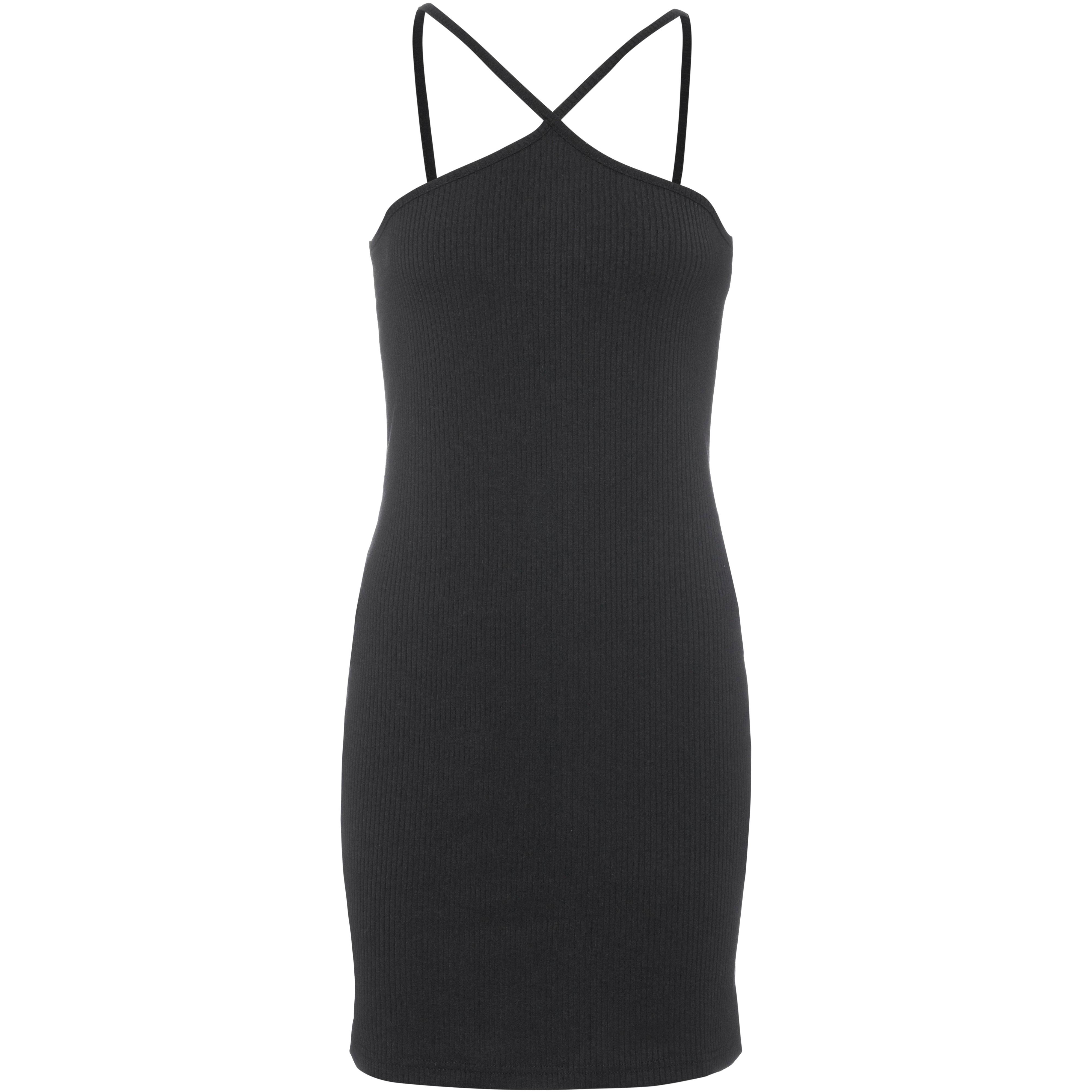 Figurbetontes Minikleid mit überkreuzten Spaghettiträgern im Dekolleté; elastisches Rippgewebe sorgen für einen angenehmen Tragekomfort; Rückenlänge: ca. 61 cm/Gr. 36; Material 63% Polyester, 33% Viskose, 4% Elastan.
