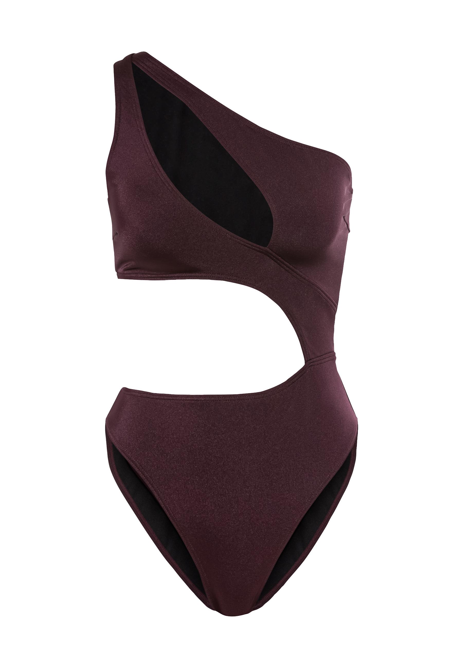 Monokini von LSCN by Lascana. Asymmetrisches Trägerdesign, Zweiteiler-Optik hinten. Sexy Cut-outs über Dekolleté und Bauch. Hoher Beinausschnitt. Glänzendes Polyamid mit trendigem Finish.
