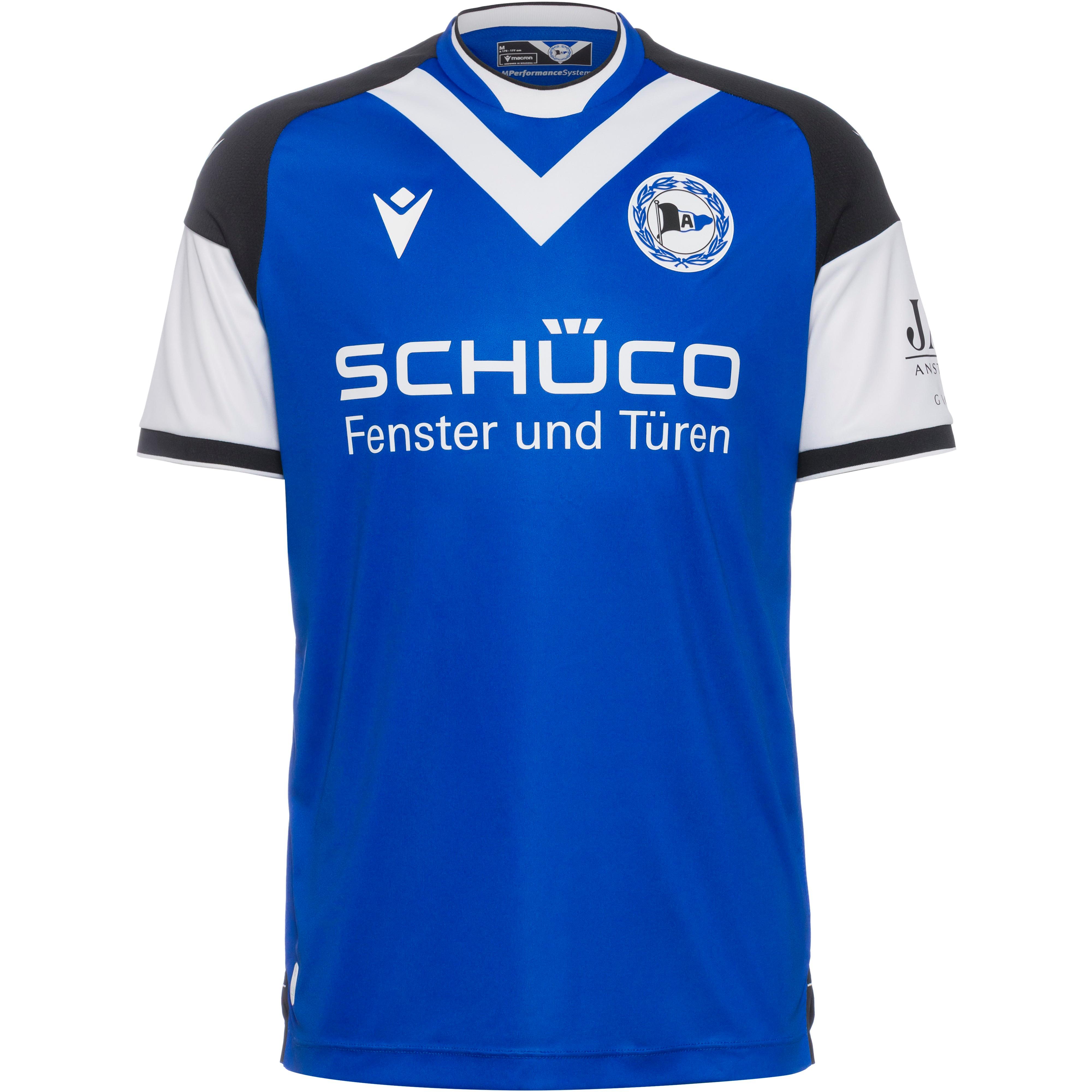 Fußballtrikot im Heimdesign des Arminia Bielefeld, für die Saison 2023/24; mit feuchtigkeitsregulierendem und atmungsaktivem M-Performance-System; Rundhalsausschnitt; die Raglanärmel sorgen für optimale Bewegungsfreiheit; strategisch platzierte Mesh-Einsätze sorgen für optimale Bewegungsfreiheit; diverse Vereins-, Sponsoren- und Markendetails; Material 100% Polyester (recycelt).