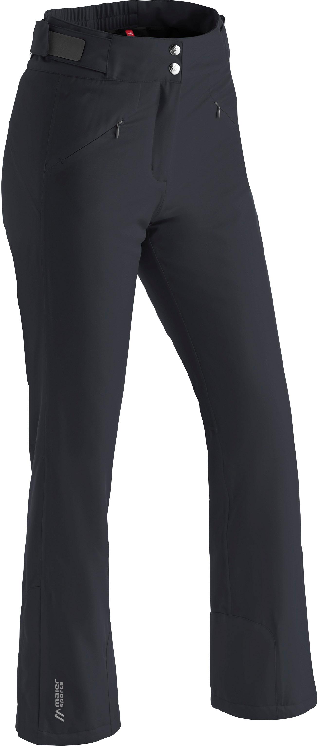 Skihose in schmaler, femininer Passform; wasser- und winddicht sowie atmungsaktiv dank mTEX 10.000 Membran (Wassersäule: 10.000 mm); mit wasserabweisender, ohne PFC hergestellter Imprägnierung; leichtgewichtige mTHERM-Kunstfaserisolierung speichert die Körperwärme; Stretchmaterial für hohe Bewegungsfreiheit; hoher, teilelastischer Bund mit seitlichen Klettriegeln zur Weitenregulierung; 2 Reißverschlusstaschen; Beinabschluss mit Reißverschluss, integrierten Gamaschen und robustem Kantenschutz; Fair Wear Foundation; Obermaterial 100% Polyester; Futter 90% Polyester, 10% Elastan; Isolierung 100% Polyester.