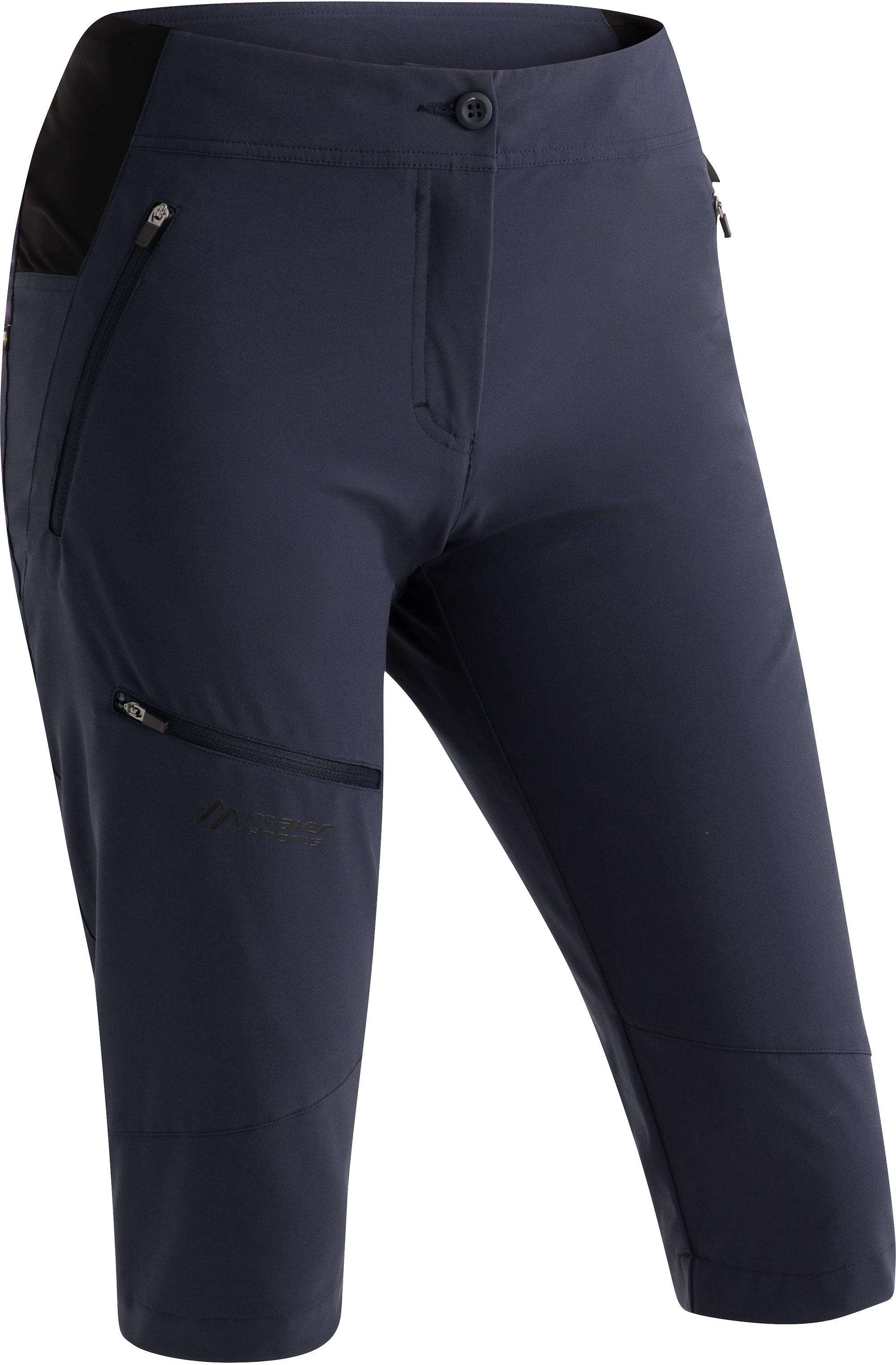 ¾ lange Wander-Caprihose; höher gechnittener Vario-Bund mit elastischer Flexzone; mSTRETCH Pro 4 Eco Gewebe; schnelltrocknend dank dryprotec Technologie; 2 seitliche Reißverschlusstaschen; eine Beintasche; eine Gesäßtasche; wasserabweisende, ohne PFC hergestellte Imprägnierung; Material 88% Polyester (recycelt), 12% Elastan.