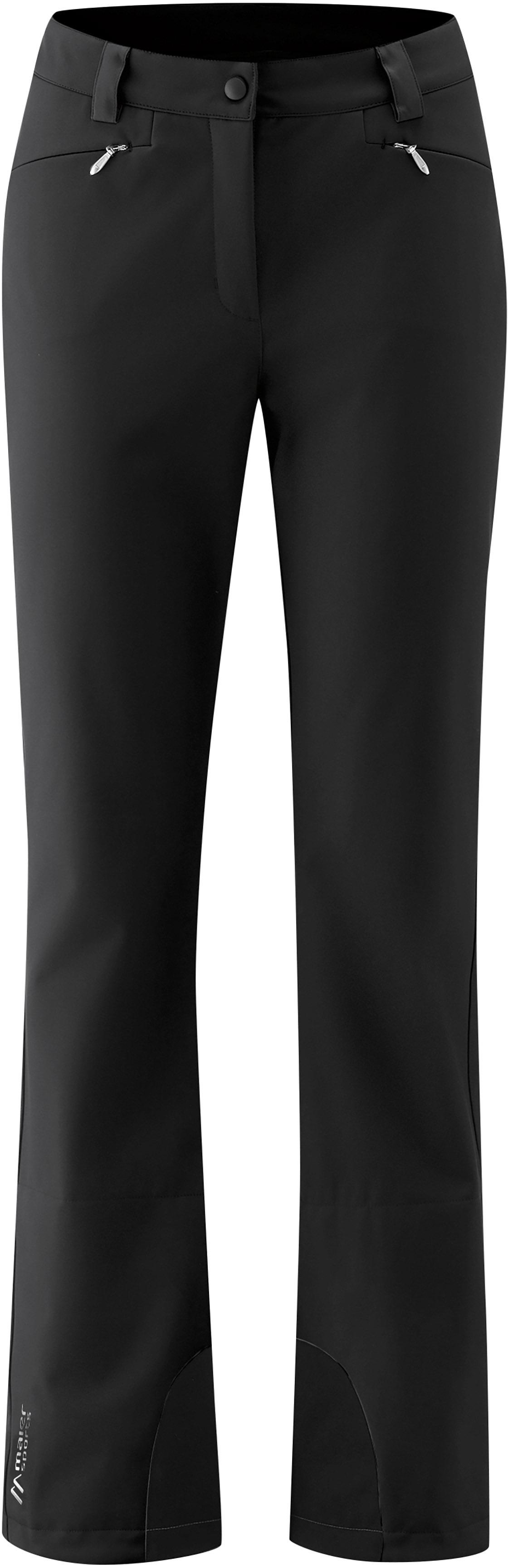Softshell-Skihose in 3-lagiger Konstruktion mit stormprotec-Funktion; winddicht und atmungsaktiv mit wasserabweisender Membran; zusätzlich mit wasserabweisender, ohne PFC hergestellter Imprägnierung; bewegungsfreundlich mit 2-Wege-Stretch; Bund mit Gürtelschlaufen; Knopf- und Reißverschluss; 2 Taschen mit Reißverschluss; integrierte Gamaschen verhindern Eindringen von Schnee; Reißverschluss und robuster Kantenschutz am Bein; sportlicher, schmaler Schnitt; Material I 92% Polyester, 8% Elastan; Material II 100% Polyester.