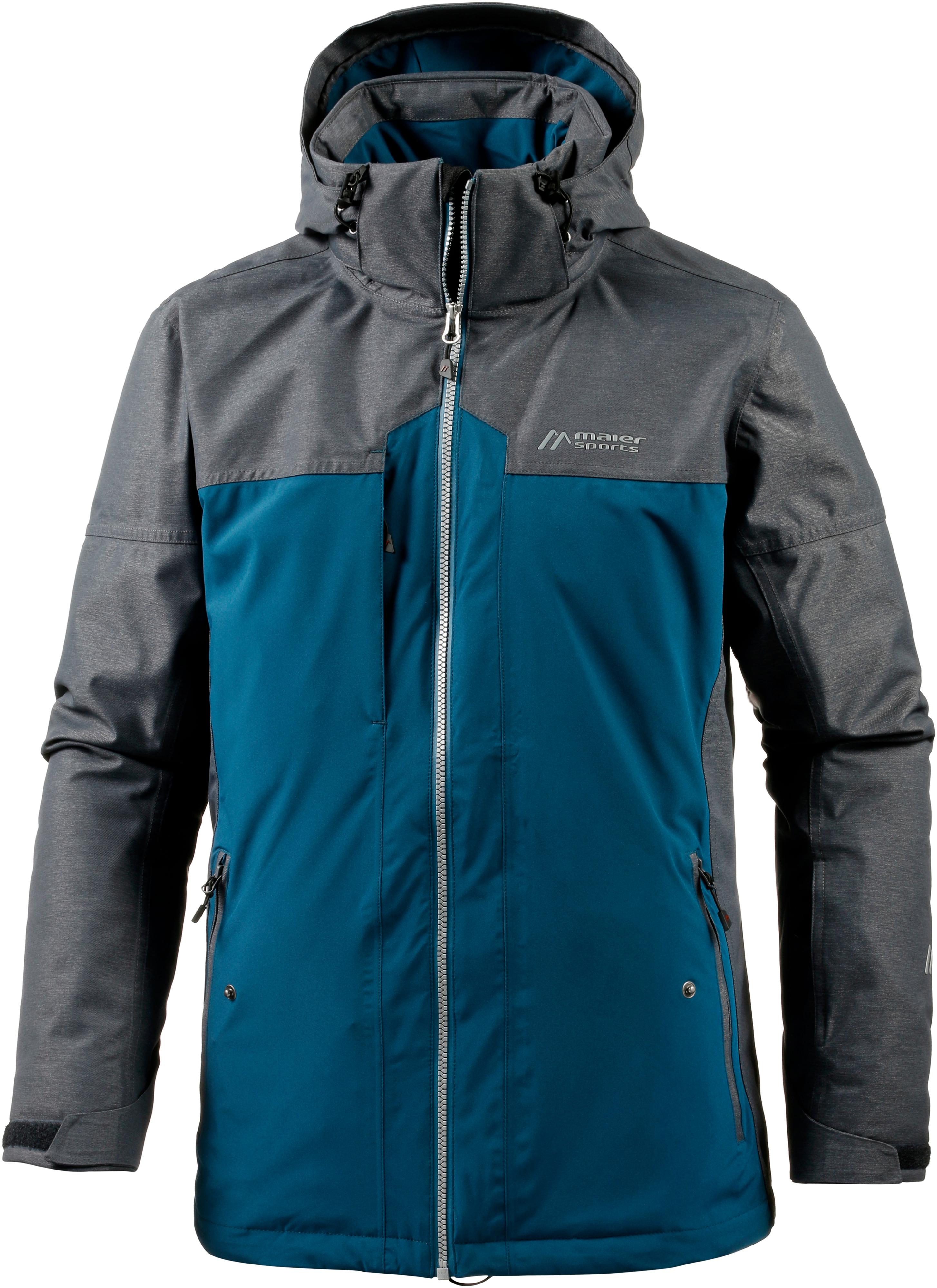 Maier Sports OUT 2 SNOW. Skijacke aus 2-Lagen-Laminat mit wasser- und winddichter sowie atmungsaktiver mTex Membrane und verschweißten Nähten; leichte Thermo-Isolierung mit effizientem Wärmerückhalt und hoher Atmungsaktivität; die verstellbare Kapuze ist abzippbar; unterlegter Frontreißverschluss mit Kinnschutz, 3 verdeckte Reißverschlusstaschen und 2 Innentaschen; Ärmel mit Klettriegel, innenliegendem Cuff und Daumenloch; Saum mit Tunnelzug und Stopper, Schneefang mit Anti-Rutsch-Gummi; Material 82% Polyamid, 18% Polyester.