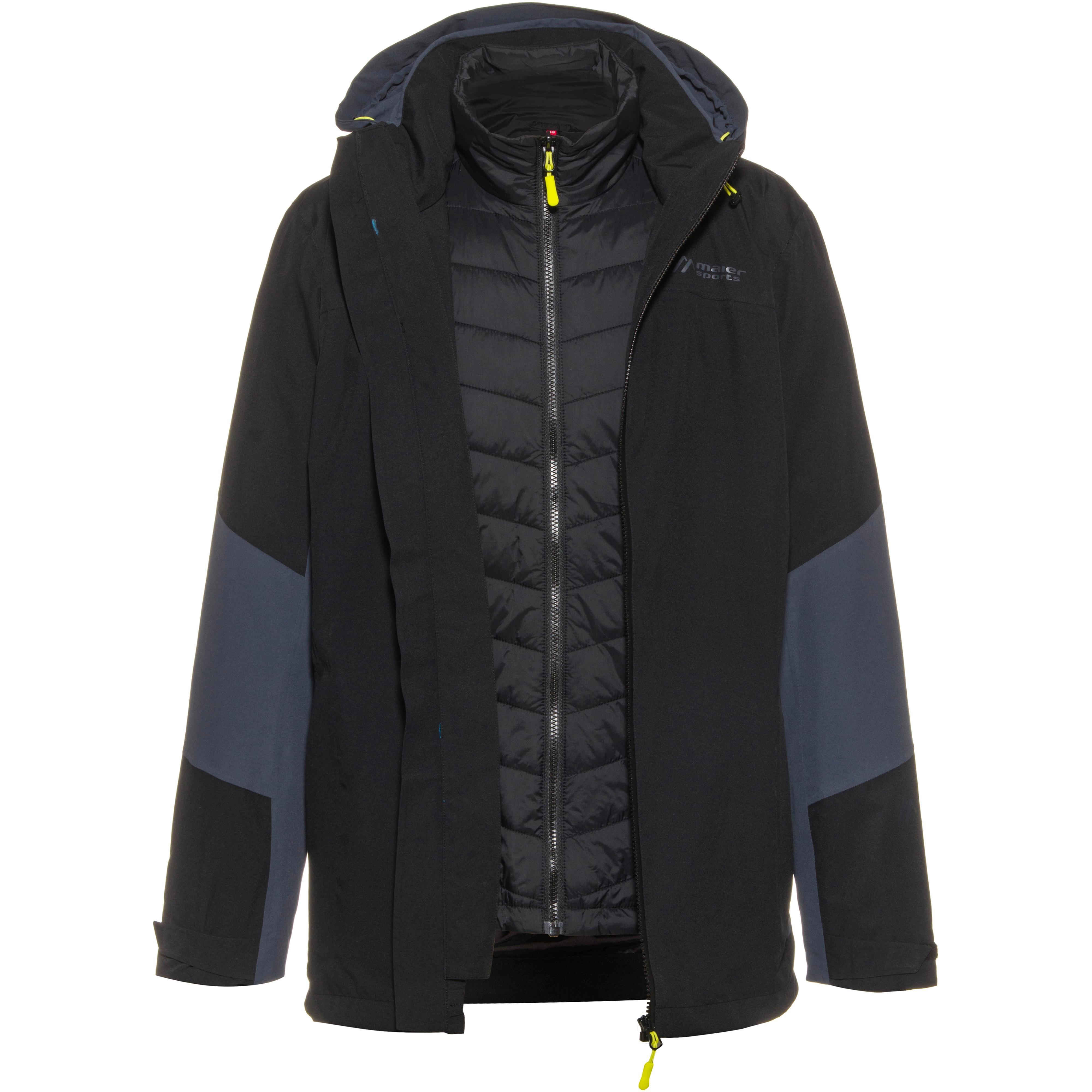 Funktionale Doppeljacke mit herausnehmbarer und separat tragbarer Steppinnenjacke; Außenjacke aus 2-Wege Stretchgewebe, mit wind-und wasserdichtem sowie atmungsaktivem 2-Lagen-Laminat; Silverplus®, schützt vor unangenehmen Körpergerüchen; Wassersäule 10.000 mm; abnehmbare Kapuze mit Schild, Gummizug und Stopper; Stehkragen; hinterlegter Frontreißverschluss mit Kinnschutz; verstellbare Armabschlüsse mit Klettriegel; 2 seitliche Reißverschlusstaschen; Saumabschluss mit Gummizug und Stopper; 1 Innentasche mit Reißverschluss; verschweißte Nähte; ohne PFC hergestellt; leichte Innenjacke mit funktioneller Primaloft® Isolierung für hohen Wärmeschutz; wasserabweisend und atmungsaktiv; Stehkragen; Frontreißverschluss; 2 seitliche Reißverschlusstaschen; Saumabschluss mit Gummizug und Stopper; Material I 100% Polyester, Material II 100% Polyamid.